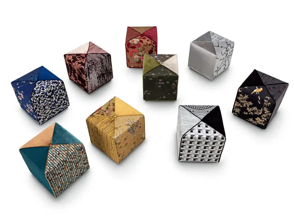 Chamaleon is an ottoman with structure in solid wood and plywood. Padding with polyurethane foam in various densities. Possibility to upholster it with 4 different fabrics. Base upholstered in fabric.