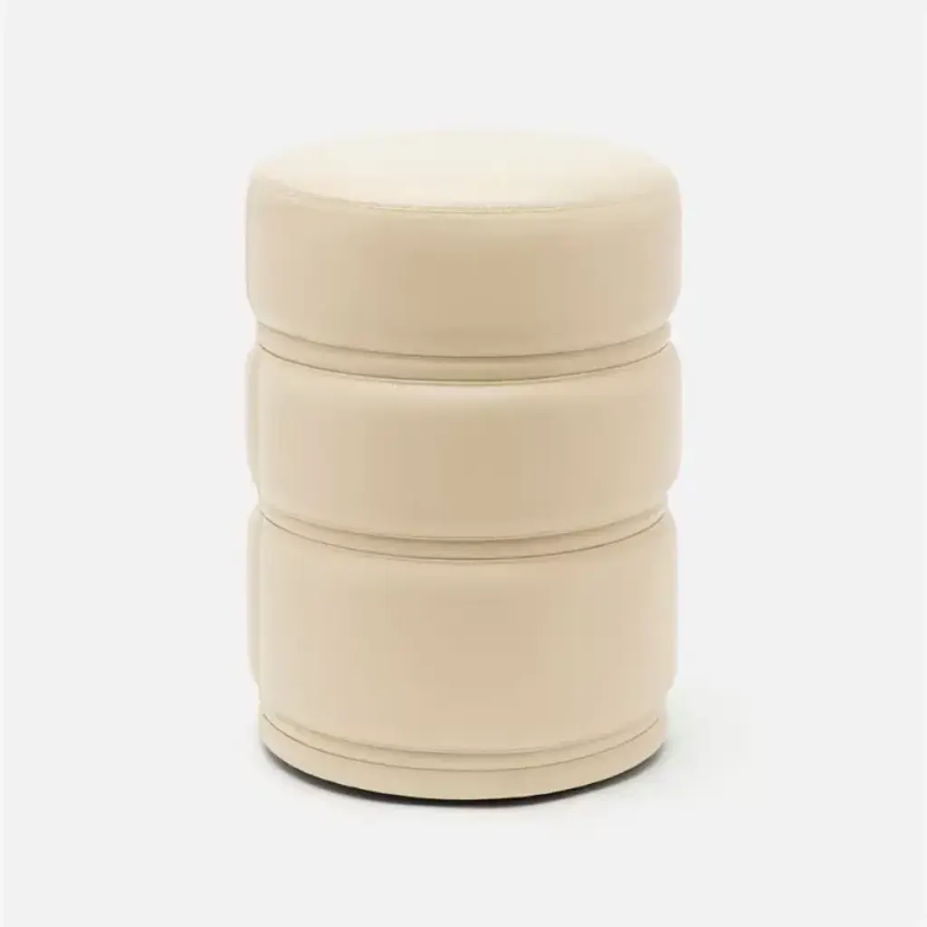 A vibrant combination of velvets in Chinese red for the base and dark red for the seat's base and skirt lends this pouf its glamorous flair. Impeccably tailored, its design is completed by a steel ring lacquered in champagne that tightly embraces the seat around its base. Comfort is guaranteed by the generous internal padding in different-density polyurethane rubber that complements the wooden frame. Please inquire with the Concierge for color customizations.