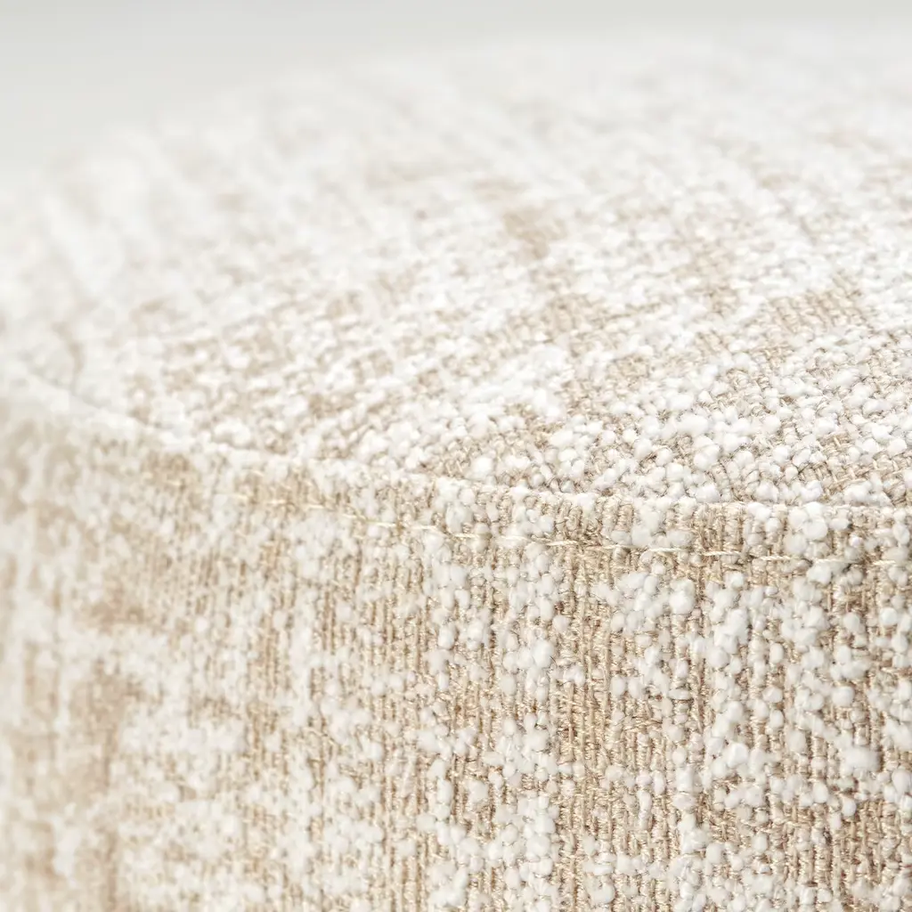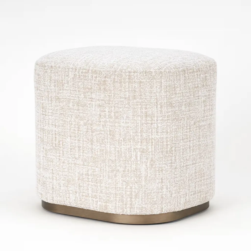 A square exquisite and classy pouf, Ciro comprises a wooden structure and a wooden base with a brushed brass finish. Upholstered with a high-end fabric that belongs to Éléments Terre Collection by Métaphores: a false plain bouclé that makes a subtle statement. The muted, mineral-based colorways and soft, nubby effect endow it with an easy elegance. Please ask the Concierge for available customization options.