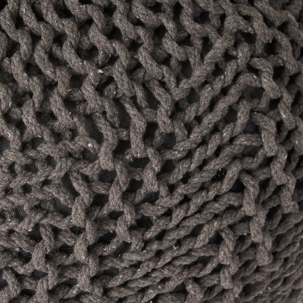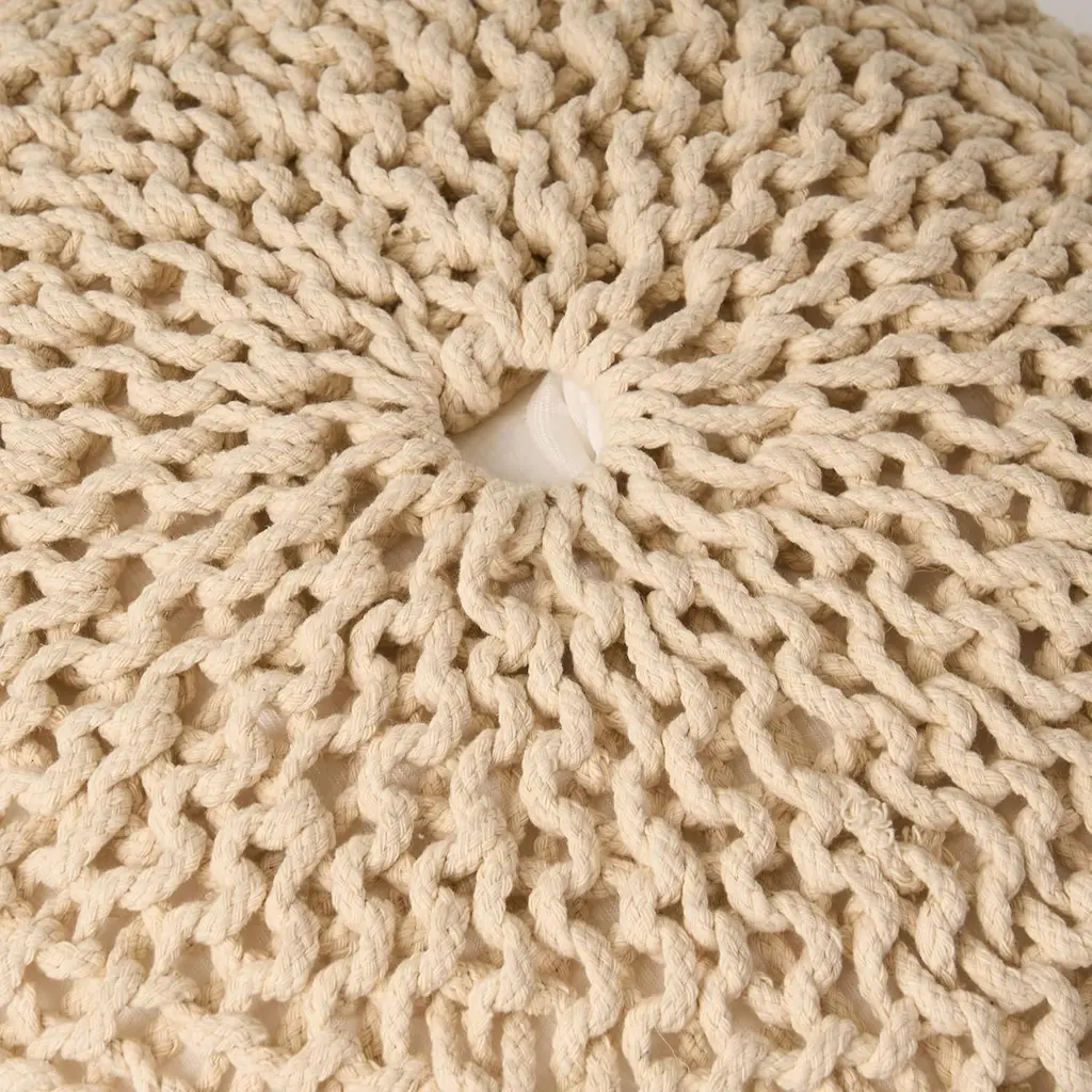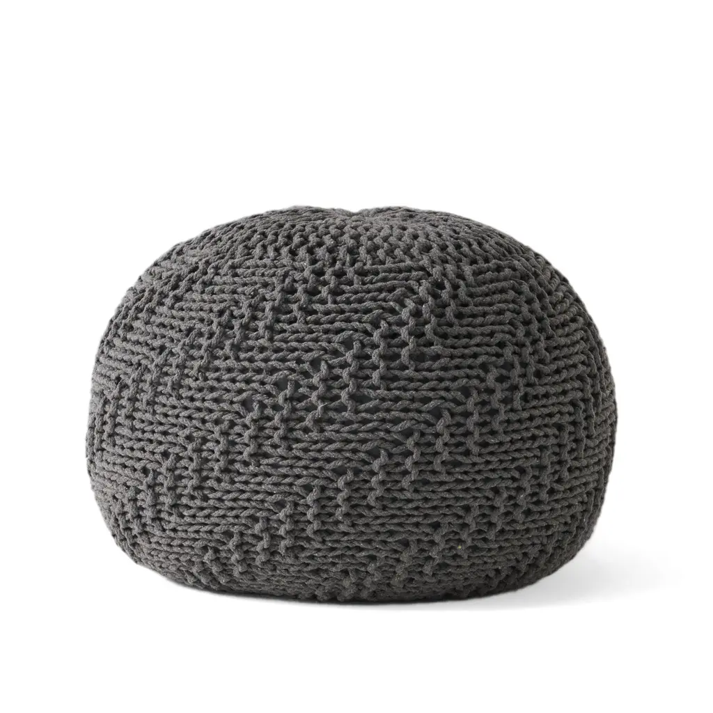 Add a touch of modern elegance to your home with this handmade pouf, designed for those who appreciate simplicity and function. Its cozy knit weave cover introduces both texture and warmth, enhancing the comfort of any room. Made from eco-friendly materials, this pouf is versatile enough for both indoor and outdoor use. With durable rope construction, it offers strength, stability, and a unique, one-of-a-kind appeal to your decor. 20" x 20"