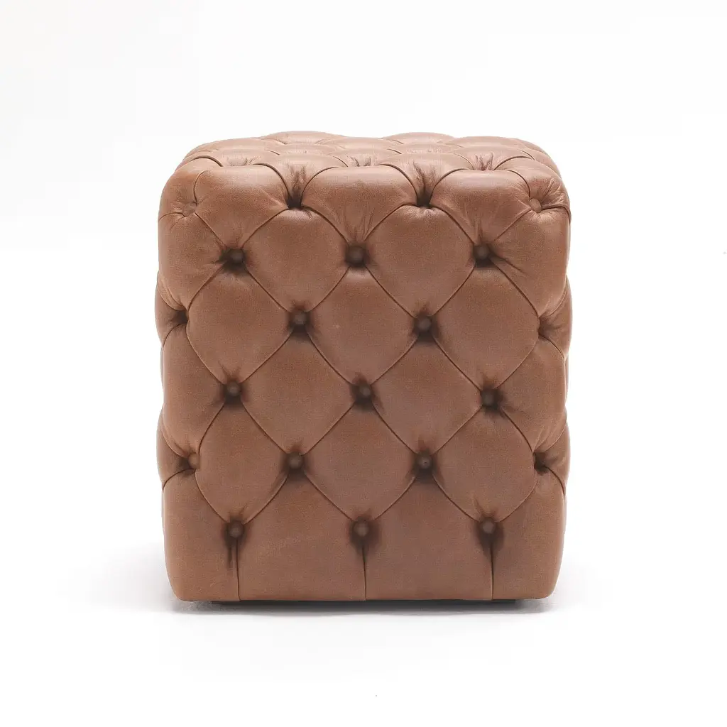 Discover the pouf with a durable, high-density polyurethane foam structure wrapped in acrylic fiber. It features a tufted leather upholstery, offering both comfort and elegance. Finished with standard leather, the pouf combines luxury and resilience, making it a stylish addition to any space.