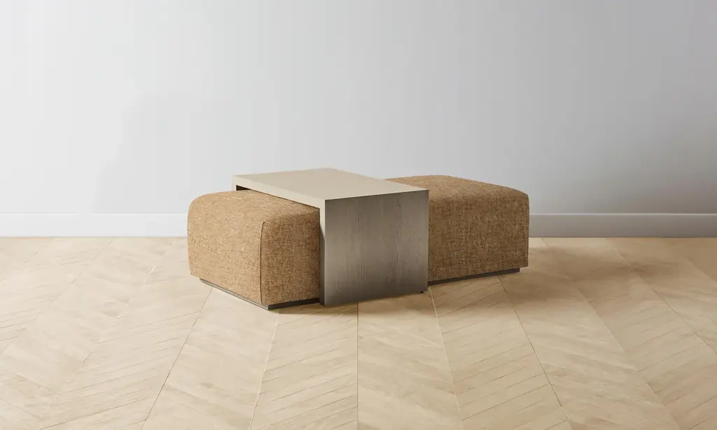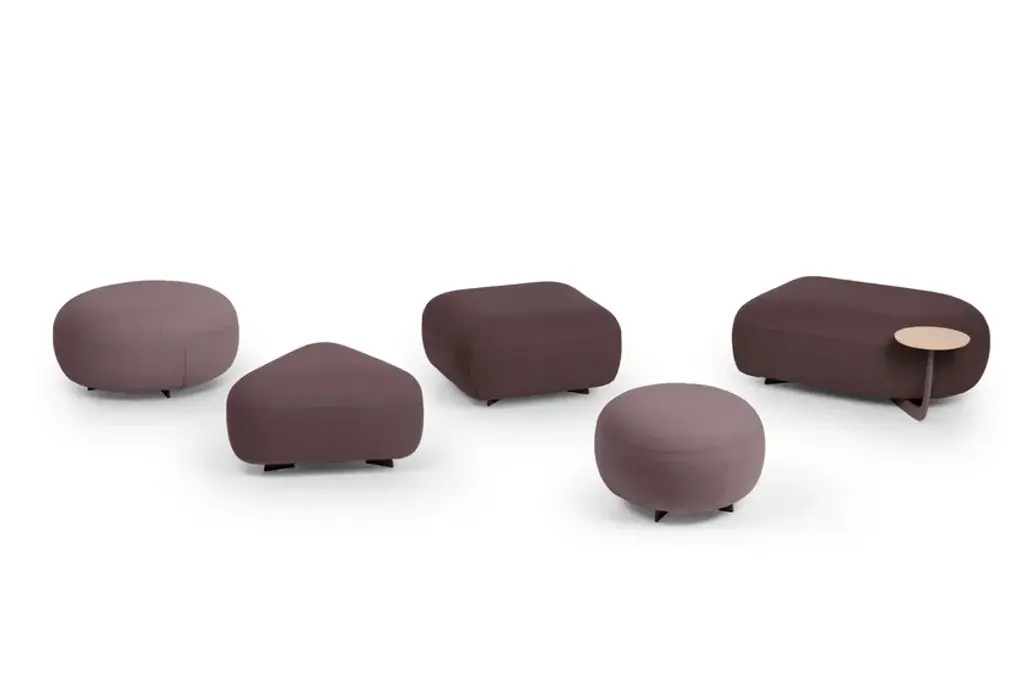 An easy, flexible seating system, suitable for any space thanks to the infinite syntactic possibilities.CODE identifies an aesthetic-formal code of simple geometric signs that constitute an alphabet of informal seats: poufs and maxi poufs that are enriched with backs and integrated tables.The design is inspired by the new ergonomics linked to the lifestyles of today's people, and the contemporary language is integrated into domestic, work or waiting spaces.The reconfigurability of the combinations allows the use in solitary or in sharing for moments of relax, conversation, reading or internet surfing.Wooden support, inner polystyrene shell, padded with variable densities flexible foam and upholstered.Powder coated laser cut steel feet. Upholstery in fabric or leather (see color chart).