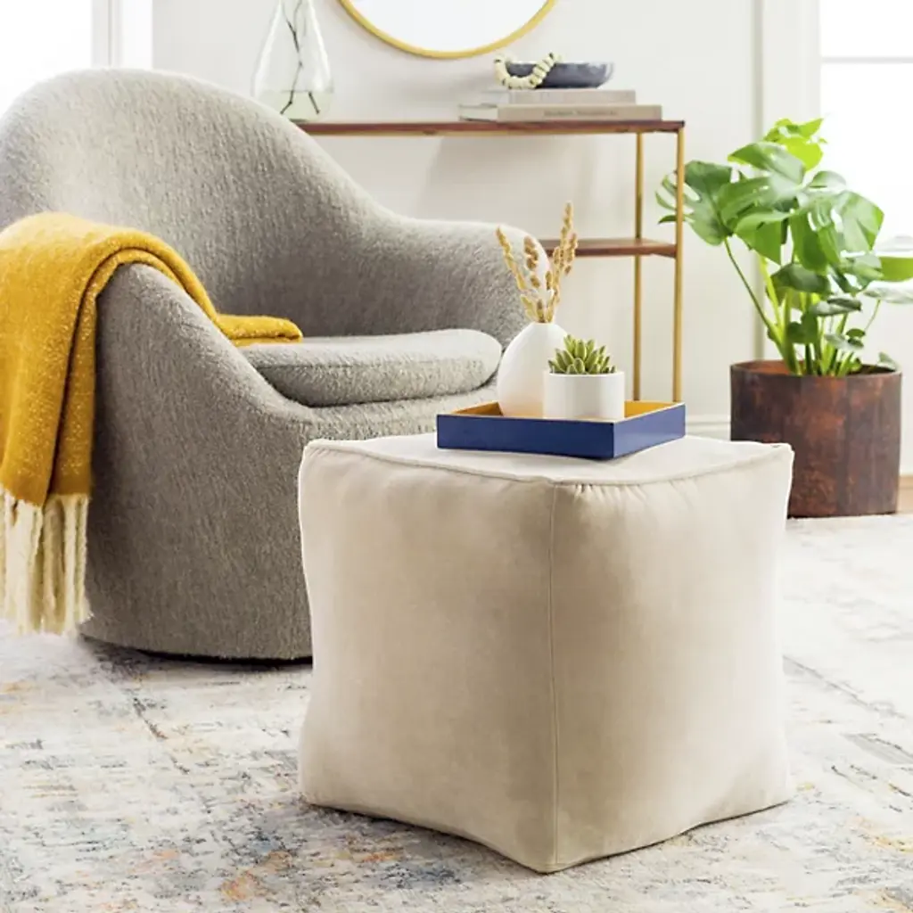 The Cotton Velvet Pouf from Surya brings exceptional plushness through its polybead filling that molds to your body shape. Handcrafted in India, this pouf combines the luxurious feel of cotton velvet with practical design elements like a removable cover for easy maintenance. Its solid construction supports various uses—from extra seating to a footrest—while maintaining its shape through daily use. The premium fabric responds beautifully to light, creating rich dimension across its surface. Perfect for those who appreciate quality materials and multifunctional furniture pieces.