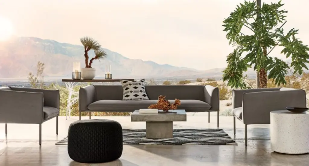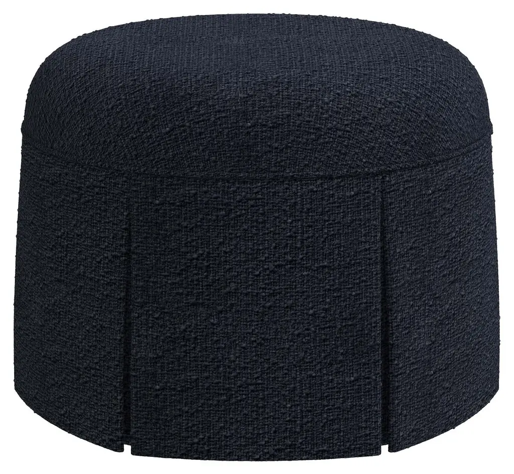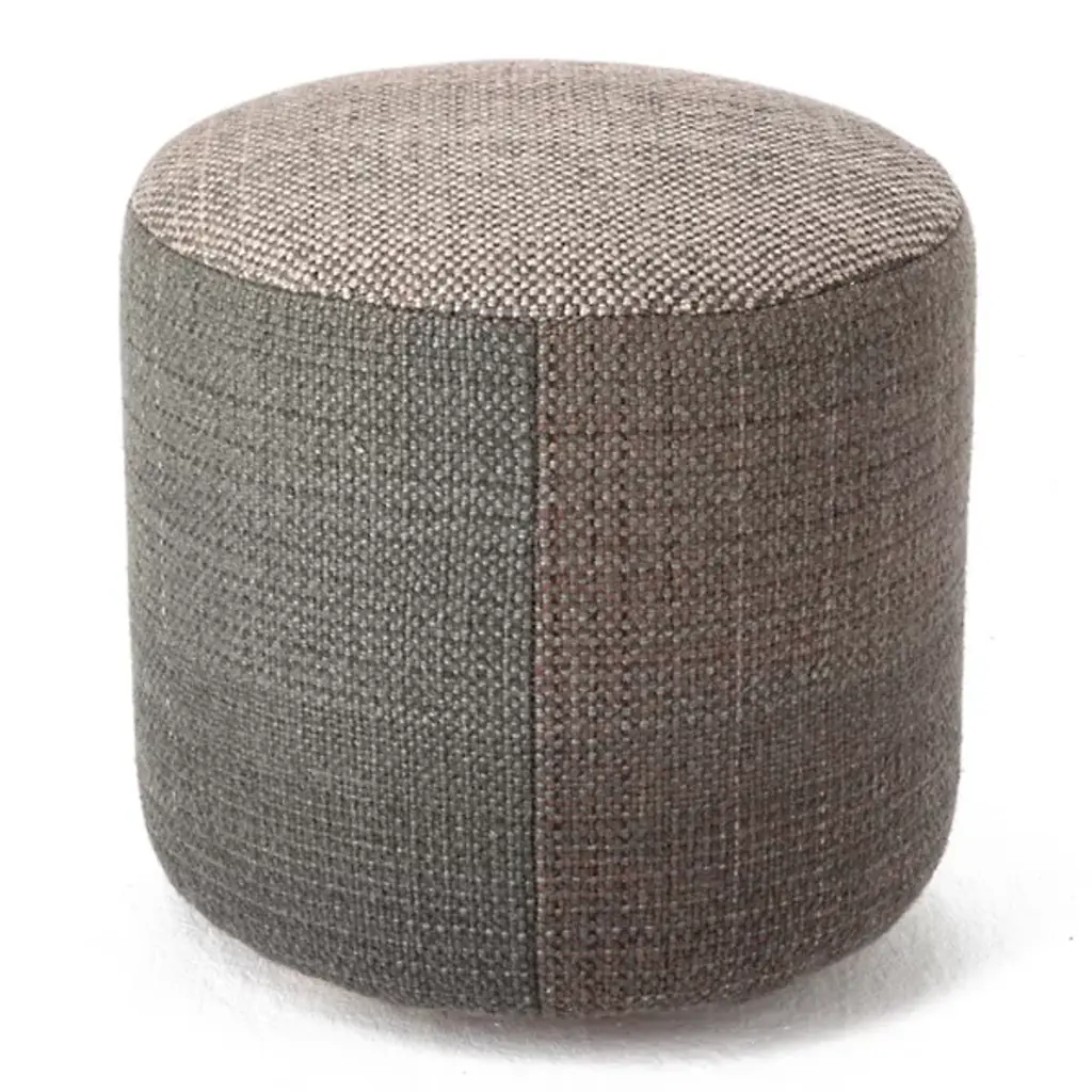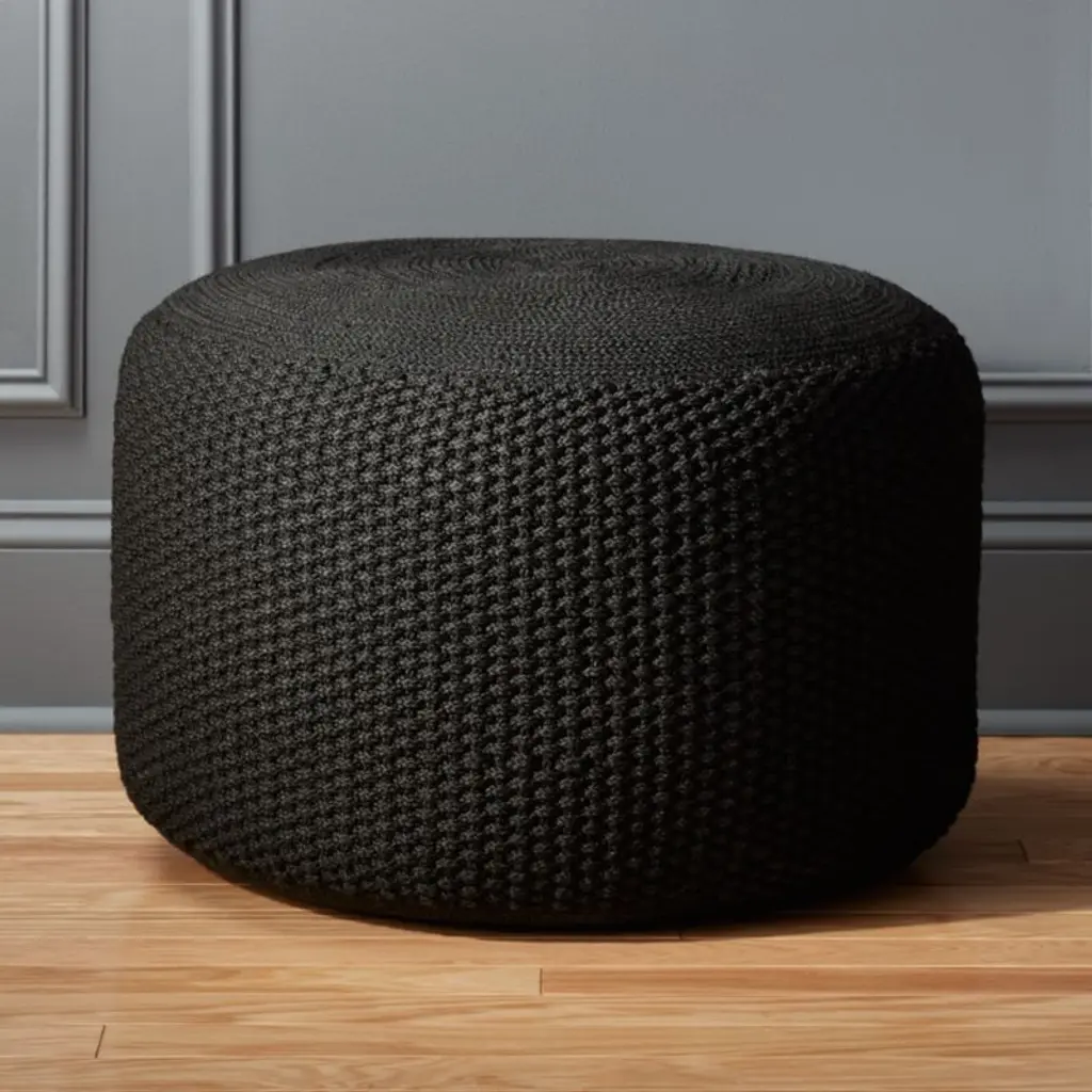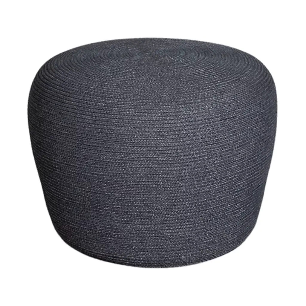 Super-sized round hits the deck in outdoor-friendly materials that can stand up (or sit down) to the elements. Chunky cross-stitch ropes in the sides, tight concentric weave rounds out the top—all in black poly/foam knit that's easy to wipe clean. Dense polyfil makes it sturdy for seat/ottoman duty, or table it with a tray on top. criss knit black pouf is a CB2 exclusive.