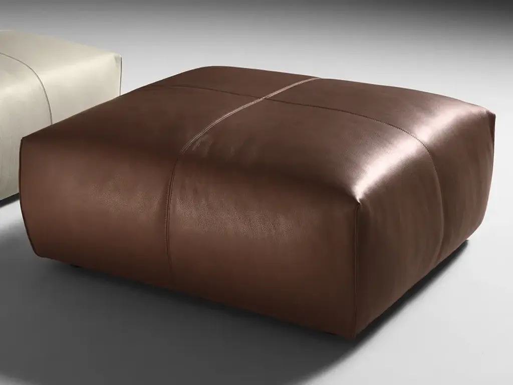 Cubo is a square leather pouf. Leather: Evoque col. 662.Pouf with structure in multi-layered poplar. Padding in high-resilience expanded polyurethane, covered with 100% European channelled goose feather. Non-removable cover.A geometric shape for the most traditional of classic furnishings. It can't be missing to complete your living room or to make your bedroom special. Great hospitality, in the Italian style, which is the ability to create simple lines with perfect and graceful seams. Comfortable to the touch, ideal for a serene and welcoming environment.