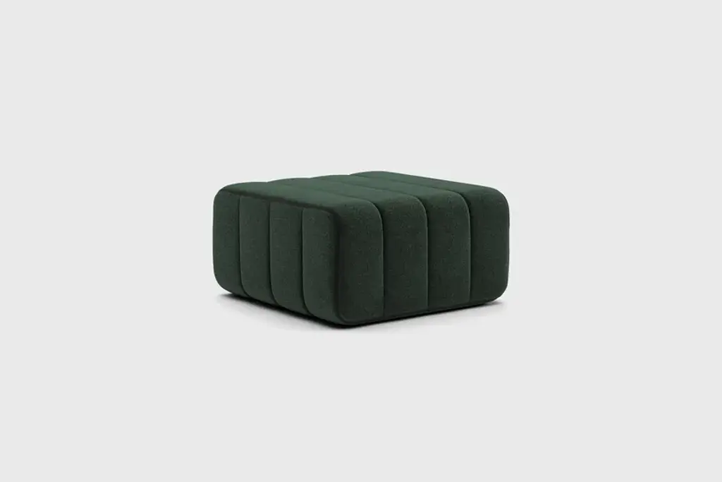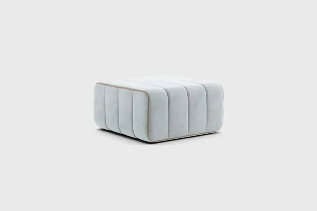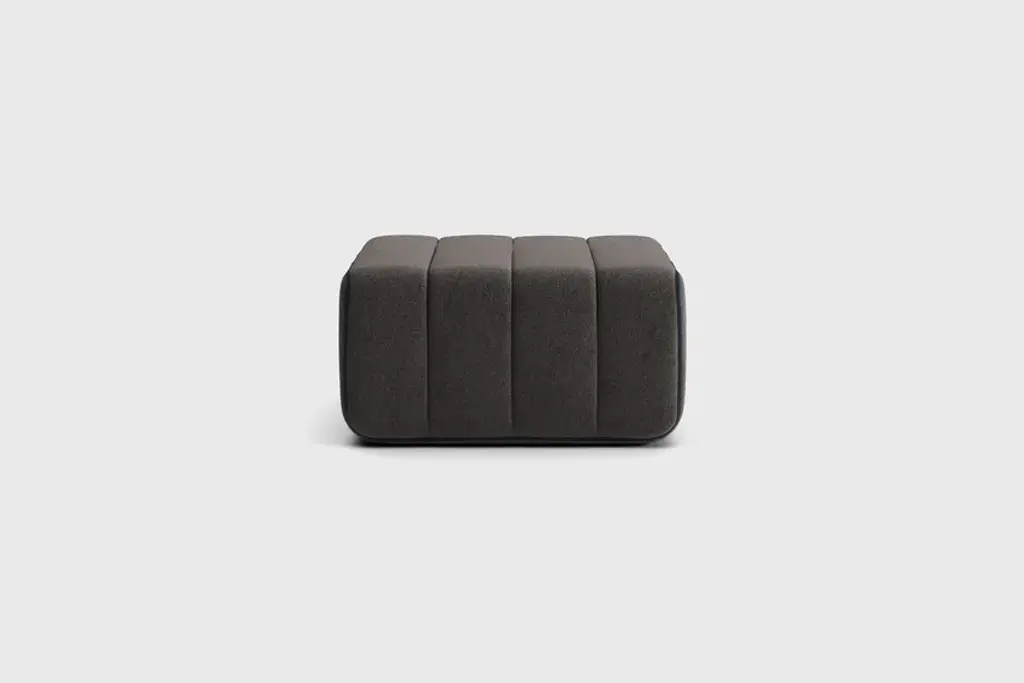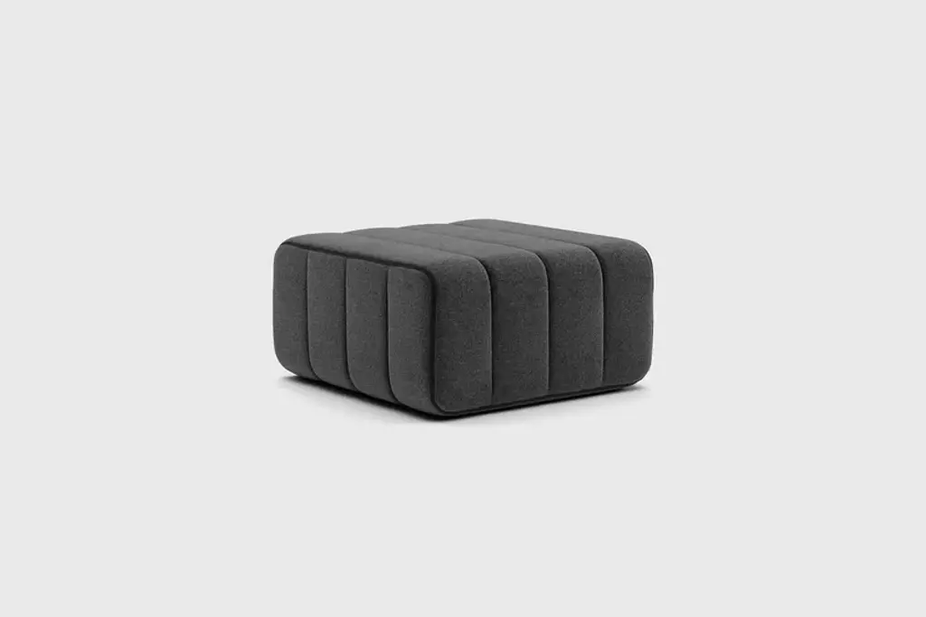 Pouf, Stool, Ottoman - Or Simply the Basic Component for Probably the Most Flexible Sofa System. The Curt single module is of course also a wonderful pouf. Or a useful ottoman. The Curt single module also makes a splendid simple, cosy stool. But the single module only shows its full potential when several of these modules are in play. The single module becomes a sofa seat, a back or armrest. A few separate single modules become an extremely flexible sofa system.Inside each Curt module there is not only a stable plywood frame covered with upholstery straps, but also a cold foam padding consisting of three different layers.Contract: All materials can be equipped for use in hotels or public buildings on request.MaterialsFoam: Cold foamFrame: PlywoodStraps: 80% polyester / 20% polypropyleneHook: AluminiumOne module and one belt. That’s Curt!Curt is certainly the most ambivalent sofasystem in the world. Anyone who can make a decision here is probably a bit odd. Curt creates lustful indecision. Who wants to make a decision when so many options are still waiting to be tried out?Curt is probably also the simplest sofasystem in the world. There is only one modular form, a pouf. If you connect these invariable modules via the patent-pending connection system, sofas can be created in every imaginable configuration. Infinite pissibilities. And can be changed at any time into any imaginable configuration.Curt is probably also the most flexible sofasystem in the world. It is not only the combination of the modules that allows infinite variations. Curt‘s cover, can be dismantled into two parts, allowing a play of colours that has never been seen before.