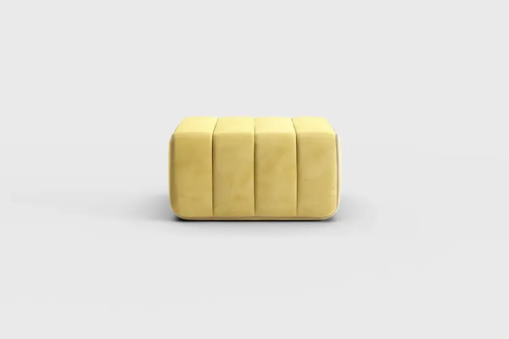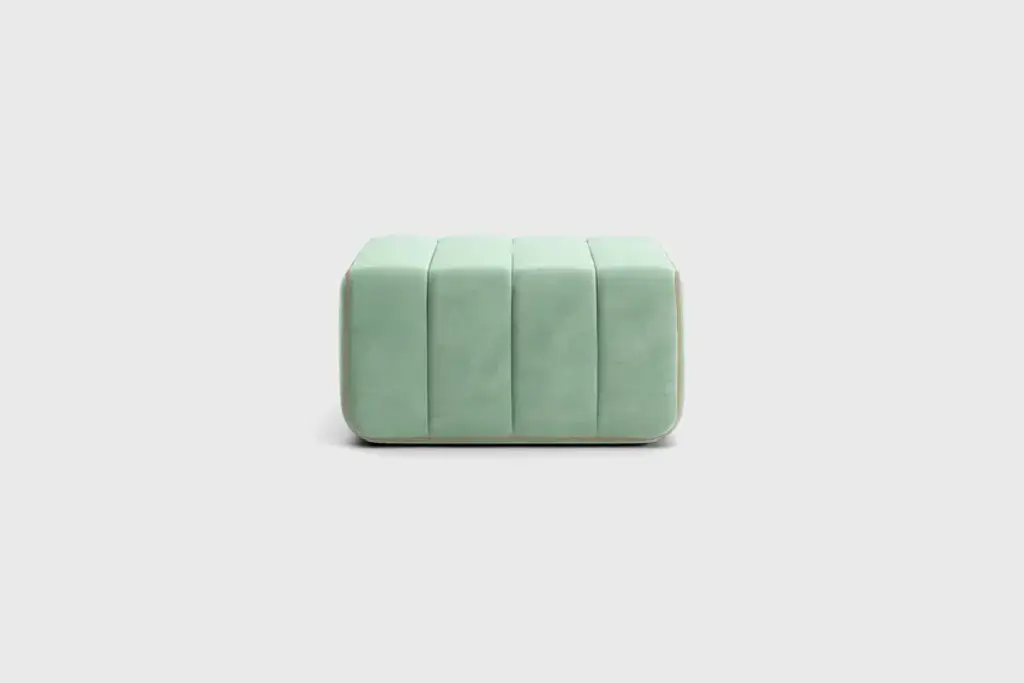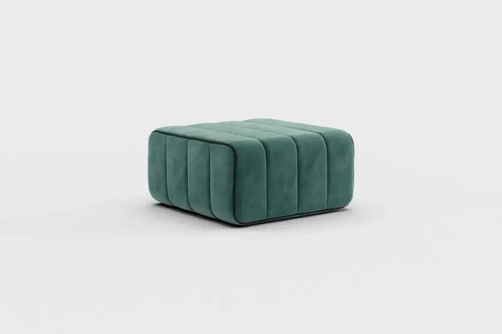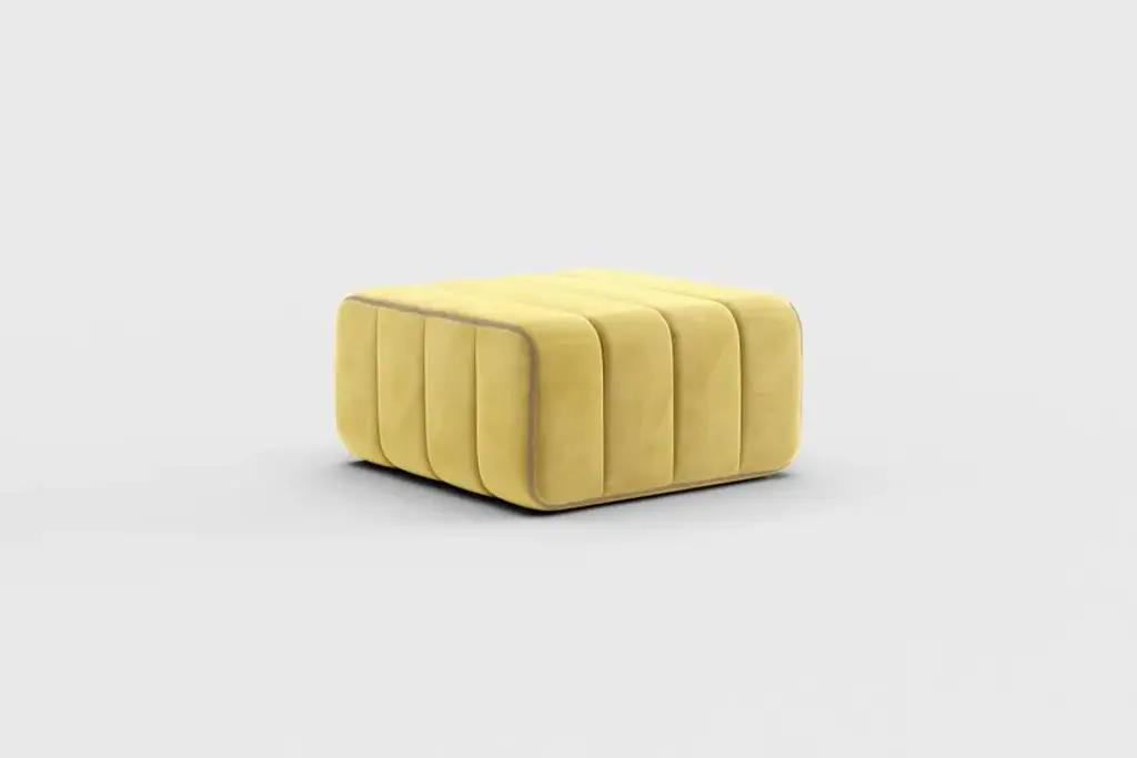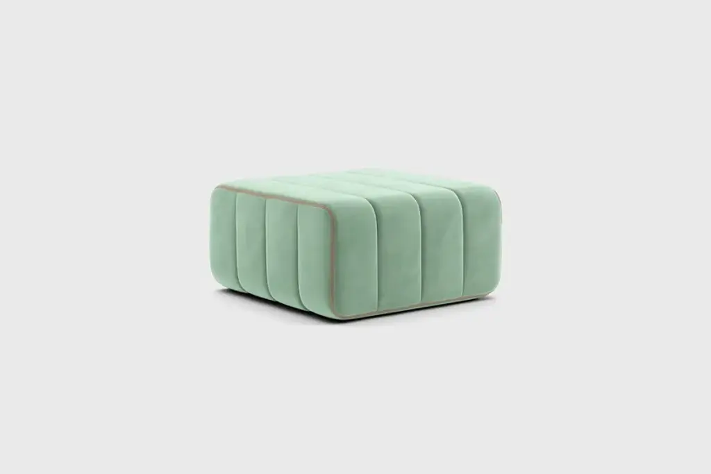 Pouf, Stool, Ottoman - Or Simply the Basic Component for Probably the Most Flexible Sofa System. The Curt single module is of course also a wonderful pouf. Or a useful ottoman. The Curt single module also makes a splendid simple, cosy stool. But the single module only shows its full potential when several of these modules are in play. The single module becomes a sofa seat, a back or armrest. A few separate single modules become an extremely flexible sofa system.Inside each Curt module there is not only a stable plywood frame covered with upholstery straps, but also a cold foam padding consisting of three different layers.Contract: All materials can be equipped for use in hotels or public buildings on request.MaterialsFoam: Cold foamFrame: PlywoodStraps: 80% polyester / 20% polypropyleneHook: AluminiumOne module and one belt. That’s Curt!Curt is certainly the most ambivalent sofasystem in the world. Anyone who can make a decision here is probably a bit odd. Curt creates lustful indecision. Who wants to make a decision when so many options are still waiting to be tried out?Curt is probably also the simplest sofasystem in the world. There is only one modular form, a pouf. If you connect these invariable modules via the patent-pending connection system, sofas can be created in every imaginable configuration. Infinite pissibilities. And can be changed at any time into any imaginable configuration.Curt is probably also the most flexible sofasystem in the world. It is not only the combination of the modules that allows infinite variations. Curt‘s cover, can be dismantled into two parts, allowing a play of colours that has never been seen before.