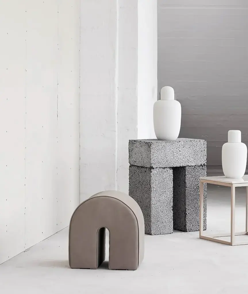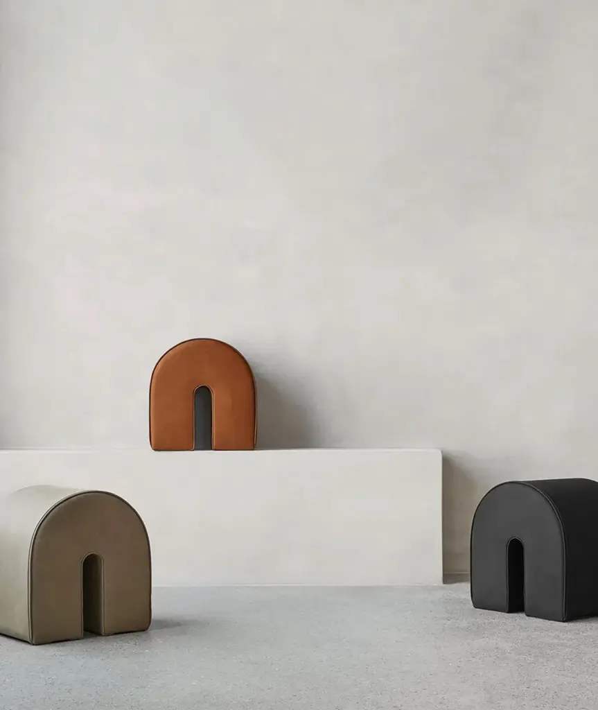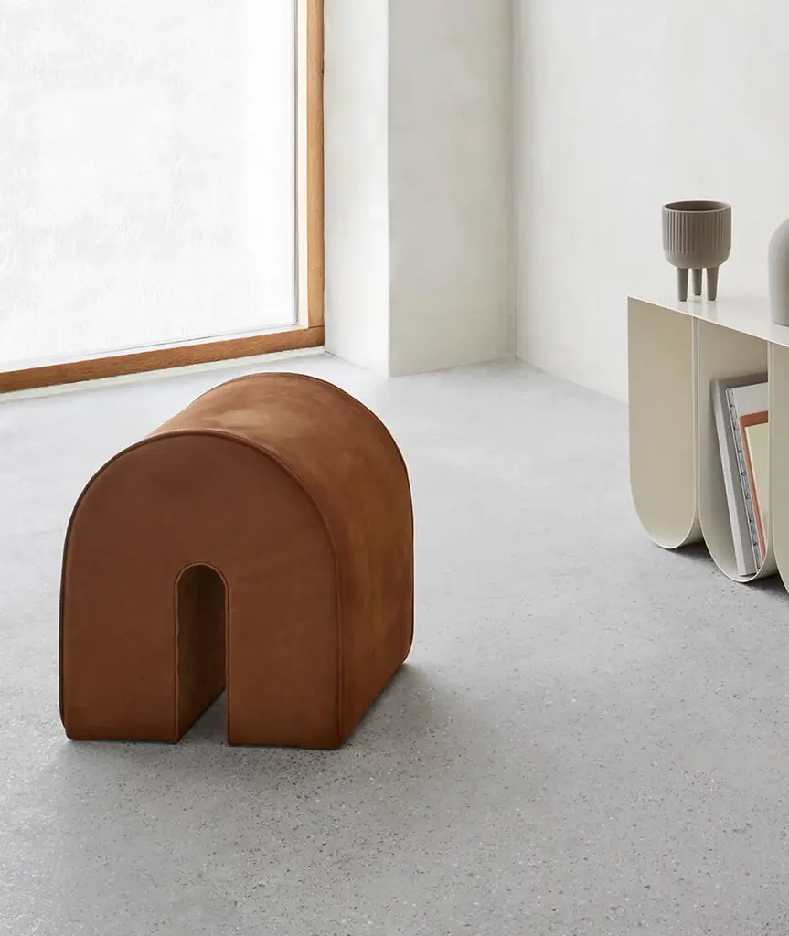 Poufs are in themselves a graphic element built up around simple principles. The Curved Pouf is made of exclusive aniline leather and the rounded shape of the pouf and its distinct design triggers our fascination with geometry. A modern blend of aesthetic elegance and casual comfort, the Curved Poufs emphasize a simple form that produces an organic expression. A soft and simple look and design. The pouf is made of the finest grey-brown aniline leather that creates an exclusive and durable seat. The pouf has an exclusive Danish / Scandinavian design with its clean rounded shape and graphic lines. The Curved Pouf can be used as an extension for your sofa, as an extra seat in your living room, or as an ottoman. On the other hand, you could also just use the pouf as an extraordinary decorative seat in your bedroom. Wherever you choose to place this luxurious pouf we guarantee that the curved pouf will add a warm, modern, and sophisticated feel to your home interior.