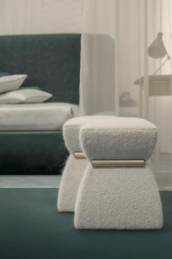 Cusi Pouf With Handle In White Mohair From Kabinet