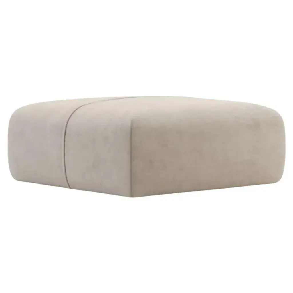 Disruption module pouf by Domkapa Materials: velvet (Aldan 2928). Dimensions: W 100 x D 100 x H 40 cm. Also available in different materials. Disruption is a modular sofa, fully upholstered, with minimalistic design and ergonomic proportions. This system includes settees in various sizes, from pouf to chaise longue, that can be combined to create different solutions. The seat is a high cushion and armrests can also be added by choosing the armchair version.
