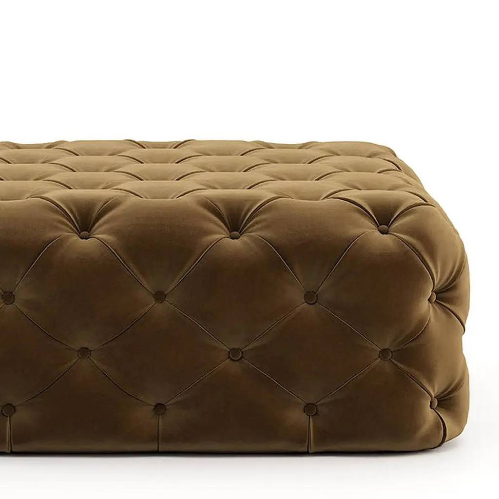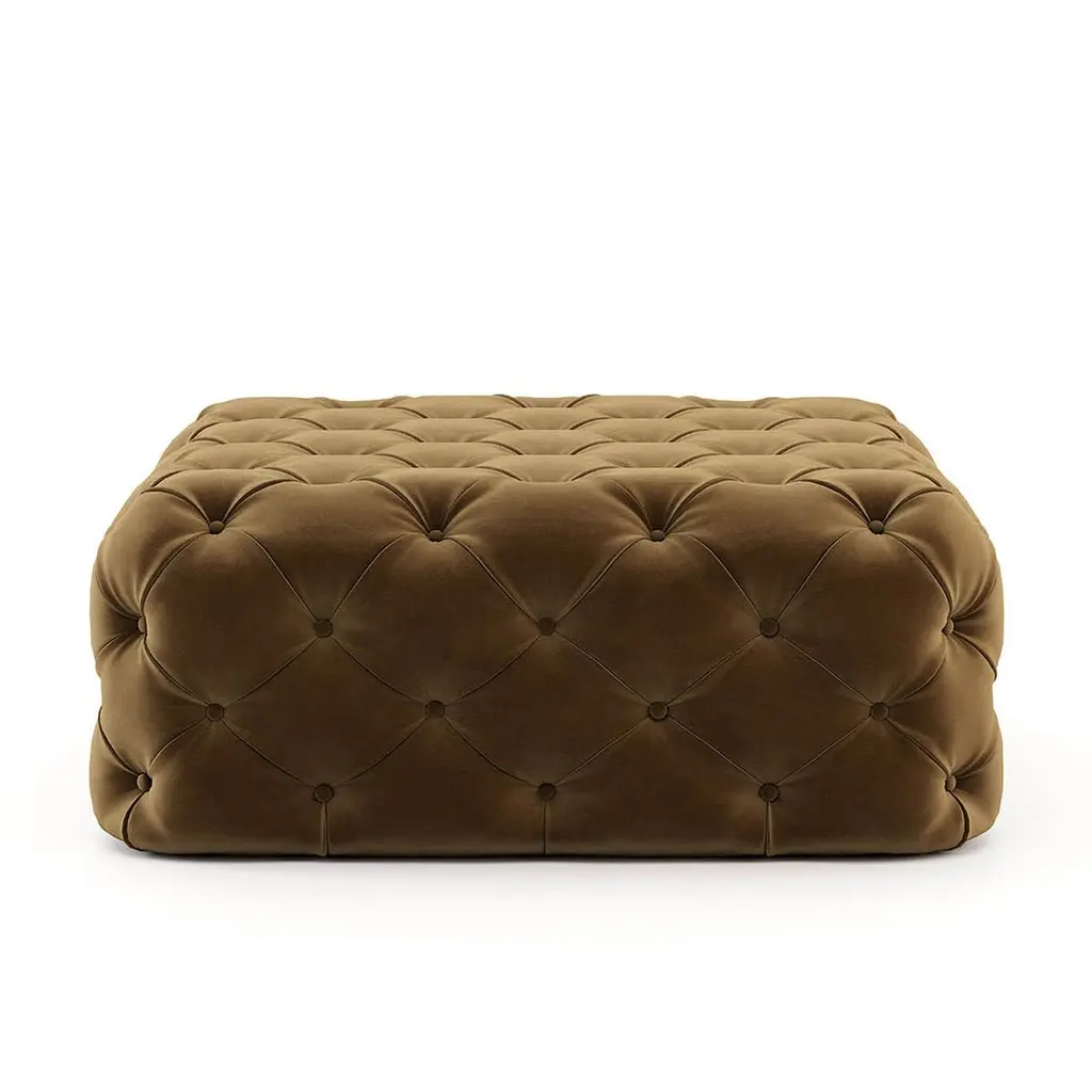 Pouf divine with wooden structure, upholsteredand capitonated covered with buttons in velvet fabric.Also available with other fabrics on request.