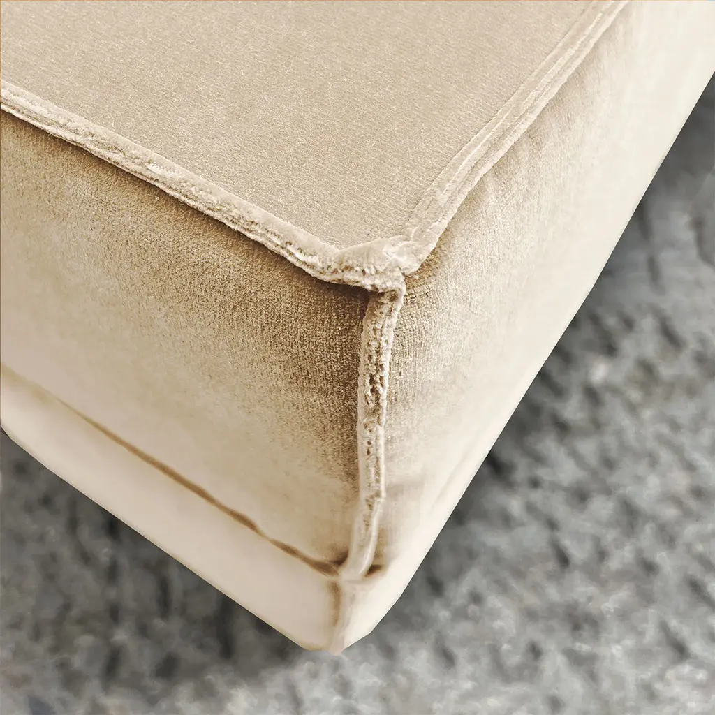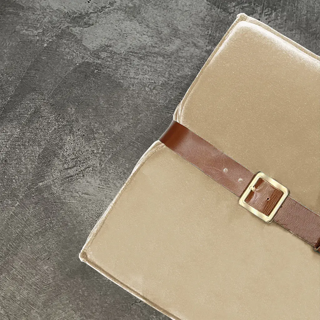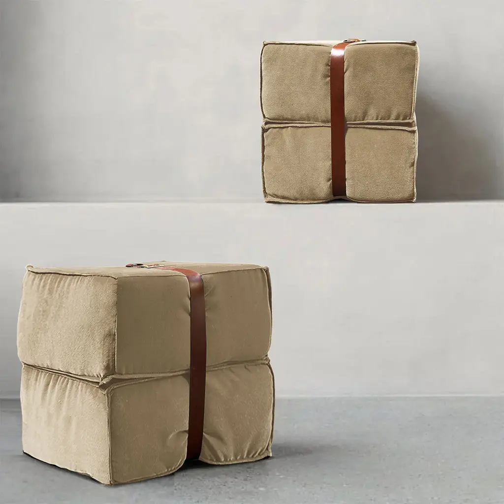Timeless elegance meets sustainability in the Docker pouf in beige velvet. Upholstered with eco-friendly 100% recycled "bio-cotton," this pouf offers both comfort and an environmentally conscious design. The leather strap adds a nostalgic element, while the versatile beige hue allows it to complement any space. Available in various sizes and finishes, this pouf is perfect for modern interiors, making a stylish and sustainable statement in any room.
