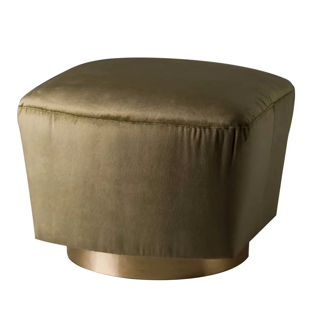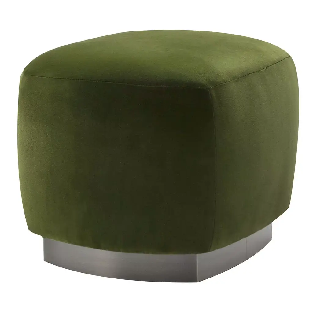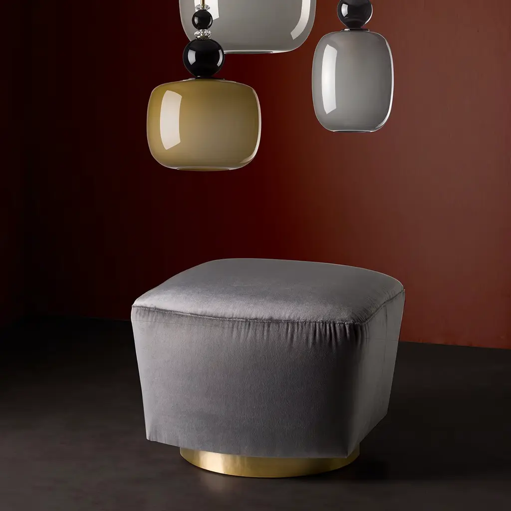This versatile and elegant pouf was designed by Ciarmoli Queda Studio as part of a collection of sophisticated seating pieces. Its glamorous allure comes from the combination of a metal plinth base with a plush cushion entirely upholstered in Venice gray-colored fabric. Other cover options are available, please ask the Concierge.