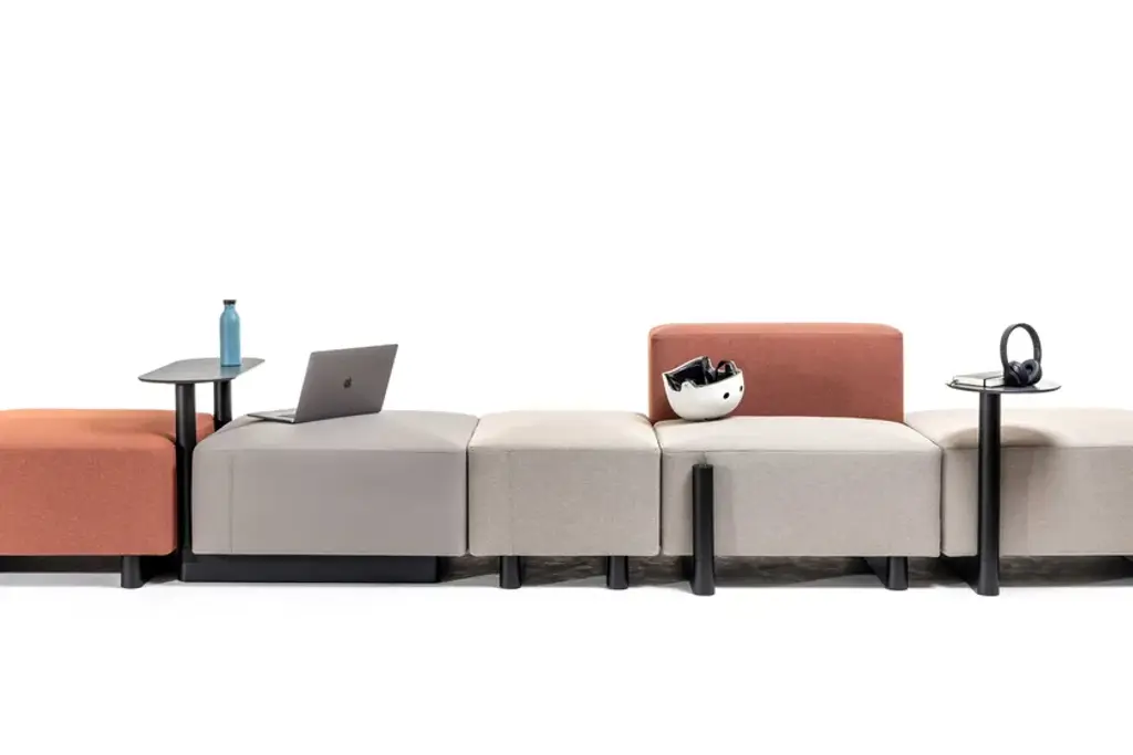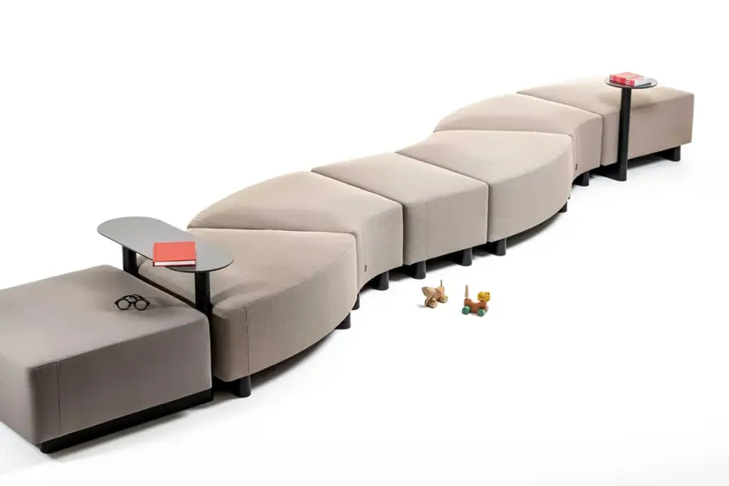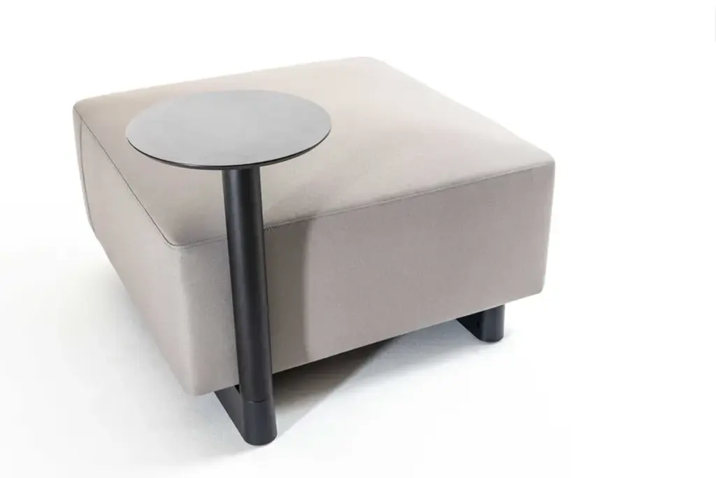 Dual si a squared ottoman, upholstered, recycled polypropilene base, adjustable glides.