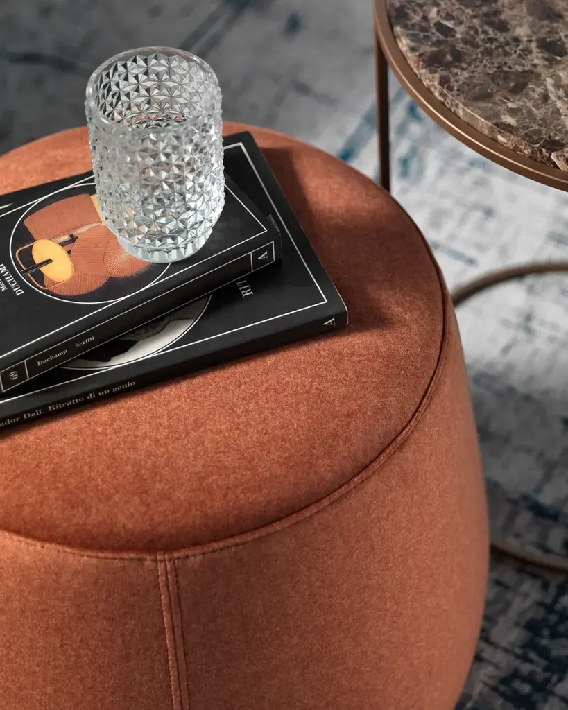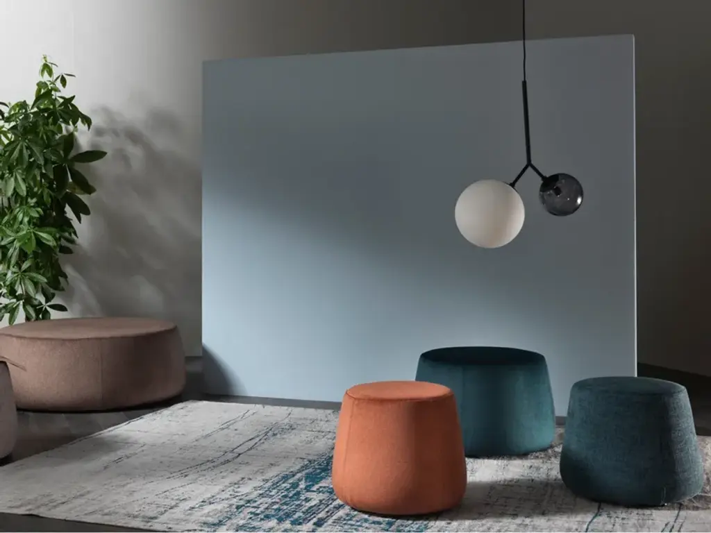 Eirene is a collection of round poufs available in three different sizes, all with a height of 44cm. Elegant accessories for both the living room and the hall, perfect for the bedroom, give a touch of refinement and comfort even in the waiting areas of public and private offices.Completely removable, they can be covered with 4 different types of fabric.Material:Structure in plywood covered with polyurethane foam in different densities, covered with velfodera coupled with pressed resin 150 / sqm, including n. 5 or more feet depending on the size.Finishing:Four different types of fabric for the cover:- fabric A “Archimede” available in 7 different colors- fabric B “Geometrico” available in 4 different colors- fabric C “Velluto” available in 7 different colors- fabric D “Ciniglia” available in 6 different colorsMaintenance suggestions:The pouf is completely removable. To wash the cover, follow the instructions below according to the type of fabric chosen: - fabric A “Archimede” = machine wash up to 40 °, dries quickly in 15 minutes, do not iron- fabric B “Geometrico” = machine wash up to 40 °, dries quickly in 15 minutes, do not iron- fabric C “Velluto” = professional washing in the laundry- fabric D “Ciniglia” = professional washing in the laundryTechnical characteristics:- Dimensions: cm ø 52 x 44h / cm ø 70 x 44h / cm ø 120 x 44h- for the technical characteristics of the fabrics, consult the 2020 Fabric Folder