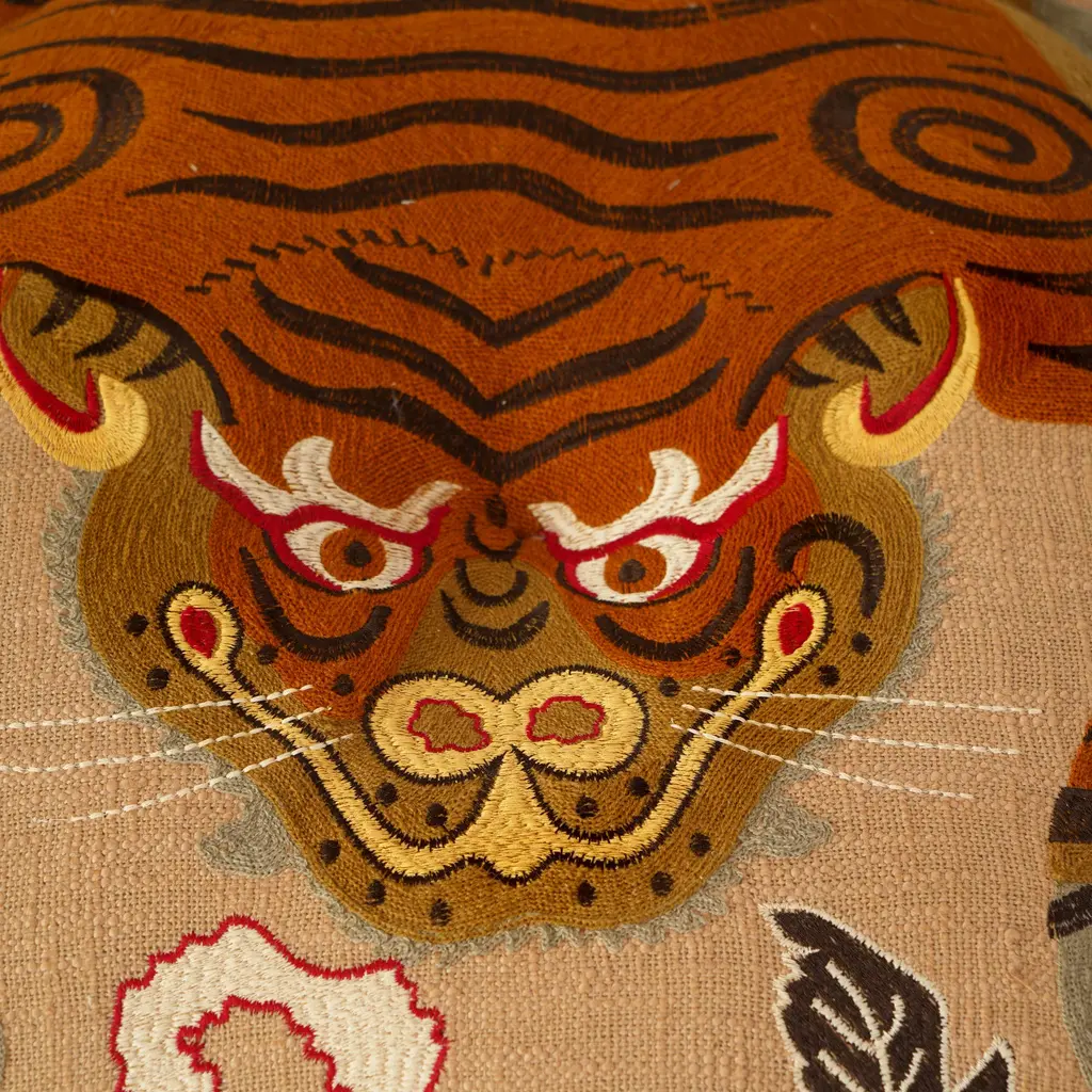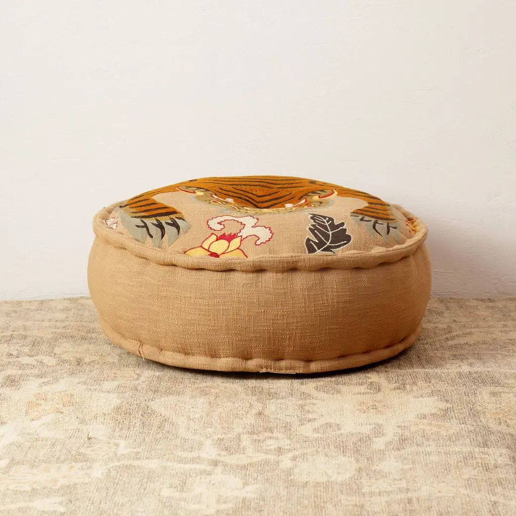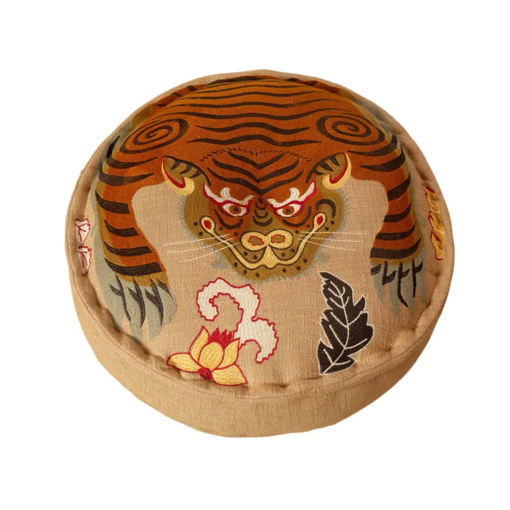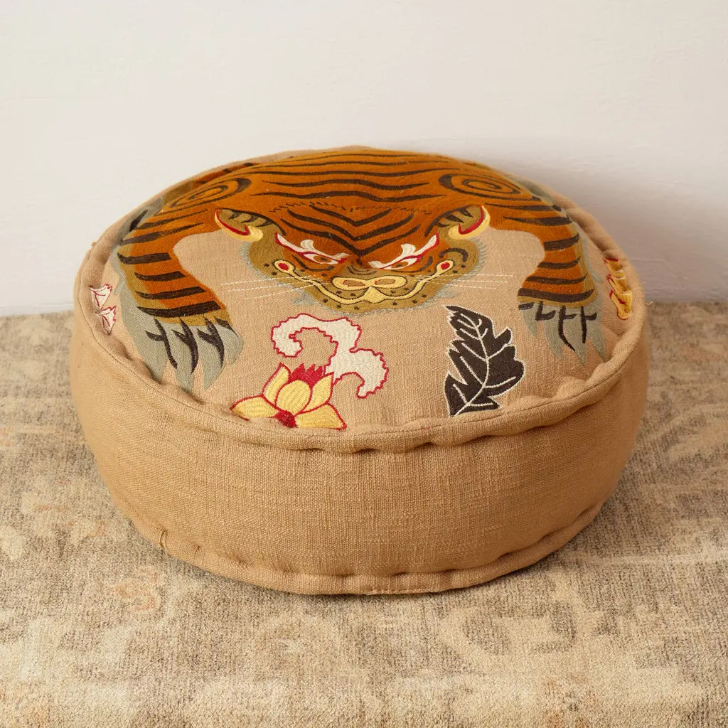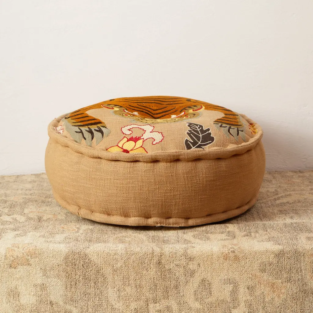 Introducing our stylish Floor Pouf, made from premium cotton fabric with a striking tiger print design. This eye-catching pouf features intricate computer embroidery, adding a refined and unique touch to your home décor. This floor pouf is filled with polyester, providing a perfect balance of softness and support for both comfort and durability. Ideal for living rooms, bedrooms, or even as extra seating, this pouf combines functionality with aesthetic appeal. Its modern design and high-quality materials make it a must-have piece for any stylish, contemporary space.