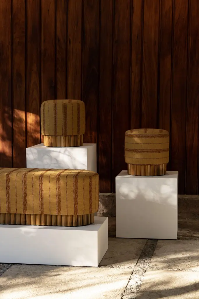 The word "ensamble" means a set and comes from the French "ensemble," referring to one with another, together.From their own individuality, Peca (Guadalajara, 2007) and Studio84 (Mexico City, 2011) present the crossing of their paths: a series of pieces that materialize the intersection between Mexican design furniture and artisanal textiles respectively, demonstrating an extraordinary vision of interior design.This encounter between organic materials, natural tones, and artistic processes of both studios can only result in the exquisite crafting of creations that balance beauty and striking quality with timelessness.This is the result of the harmonization between two mediums; furniture and textile design, from two women who, from two cities, assemble their ideas in this collection.Solid wood rods base options:Teak, Beech or Tzalam Wood.