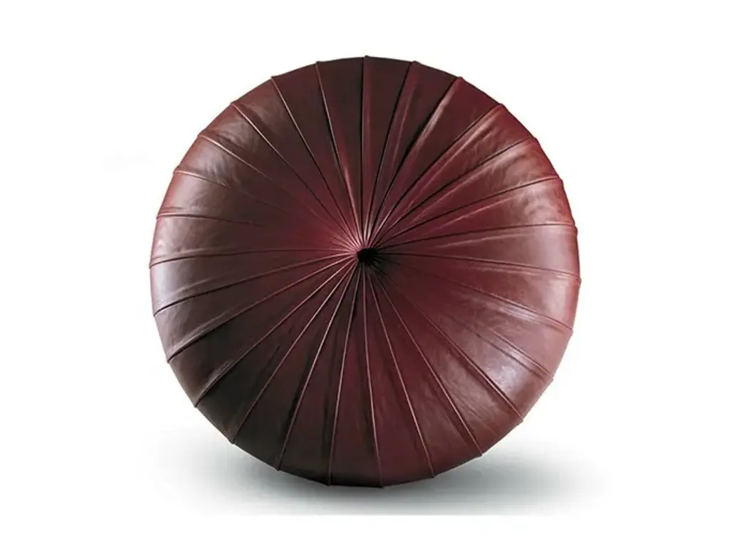 When designing the Esedra pouf Monica Förster took her inspiration from the large circular woven straw forms typical of Lapp handicrafts. The result is an inviting disk-shaped pouf of natural simplicity. Large, slightly overlapping segments create a refined decorative effect. The particular workmanship develops from the centre of the seat, which becomes the heart of a striking sunray effect. The internal structure of the Esedra pouf is made from birch plywood and solid beech. The base is in wood lacquered with black scratch-resistant textured paint. The padding is in polyurethane foam and polyester wadding. The upholstery is in Pelle Frau® leather.