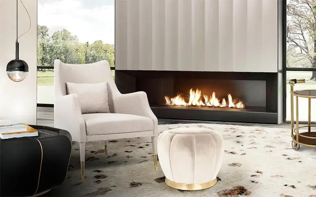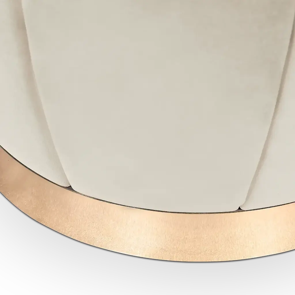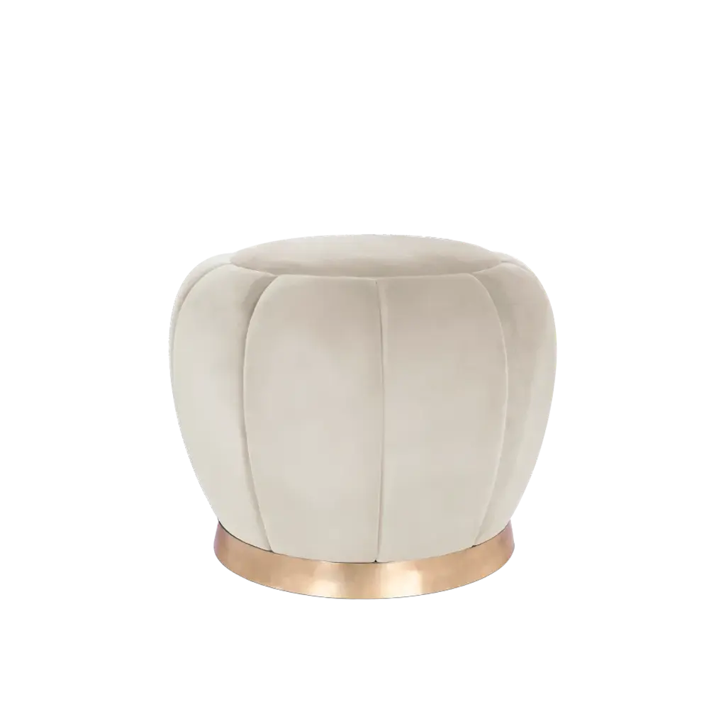 A low stool both fun and practical, and a soft and comfortable solution for your living room. with cylindrical shape and a cushioned seat upholstered in velvet fabric. It boosts some gold details over its trendy pastel colors available in the customization.