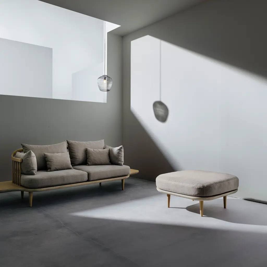 Put up your feet or grab an extra seat with the SC9 Pouf, an essential addition to &Tradition's Fly collection. Hanging loose is encouraged when there's extra room to loll or sprawl. Signe Bindslev Henriksen and Peter Bundgaard Rützou of the design studio Space Copenhagen approach their casual concept in the finely crafted Scandinavian tradition, with textured cotton/linen upholstery and an artfully crafted oak frame in a choice of oiled finishes that will gently patina over time.