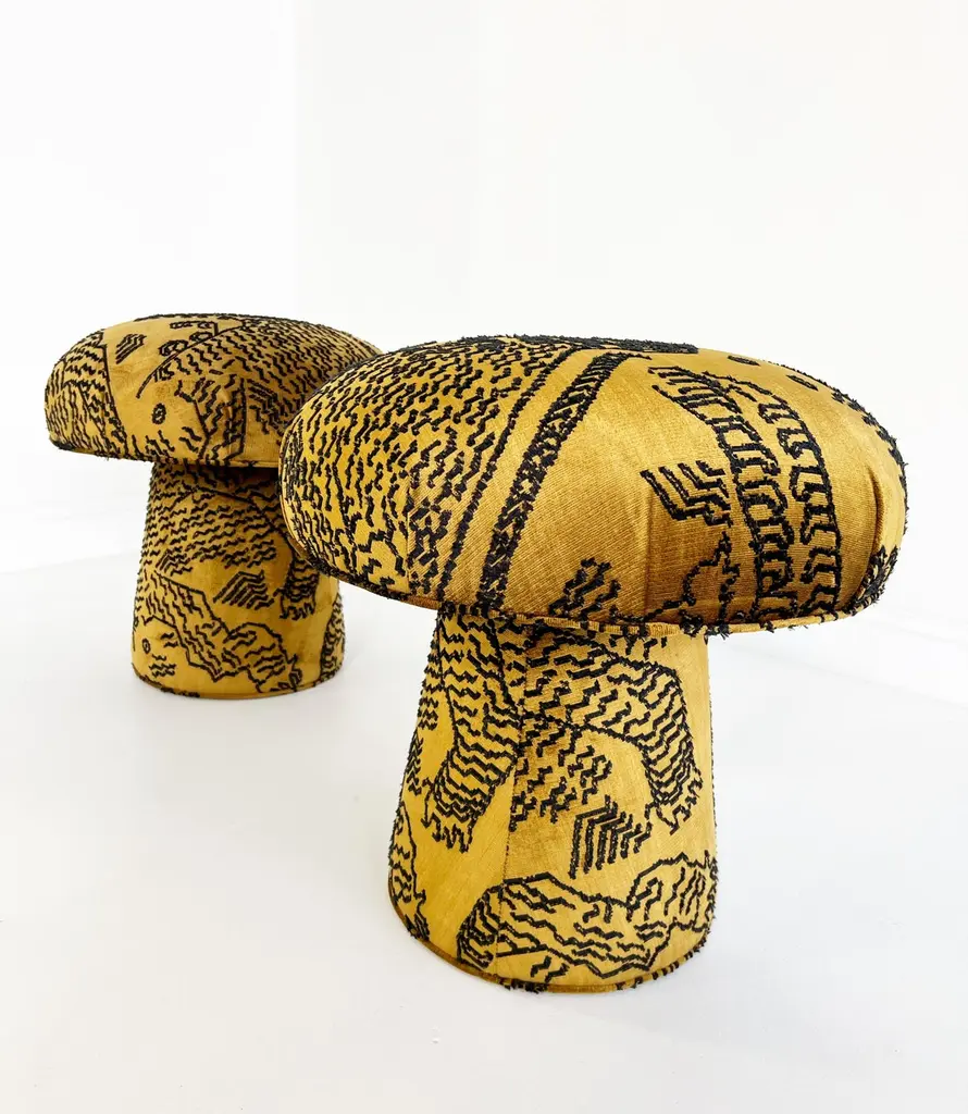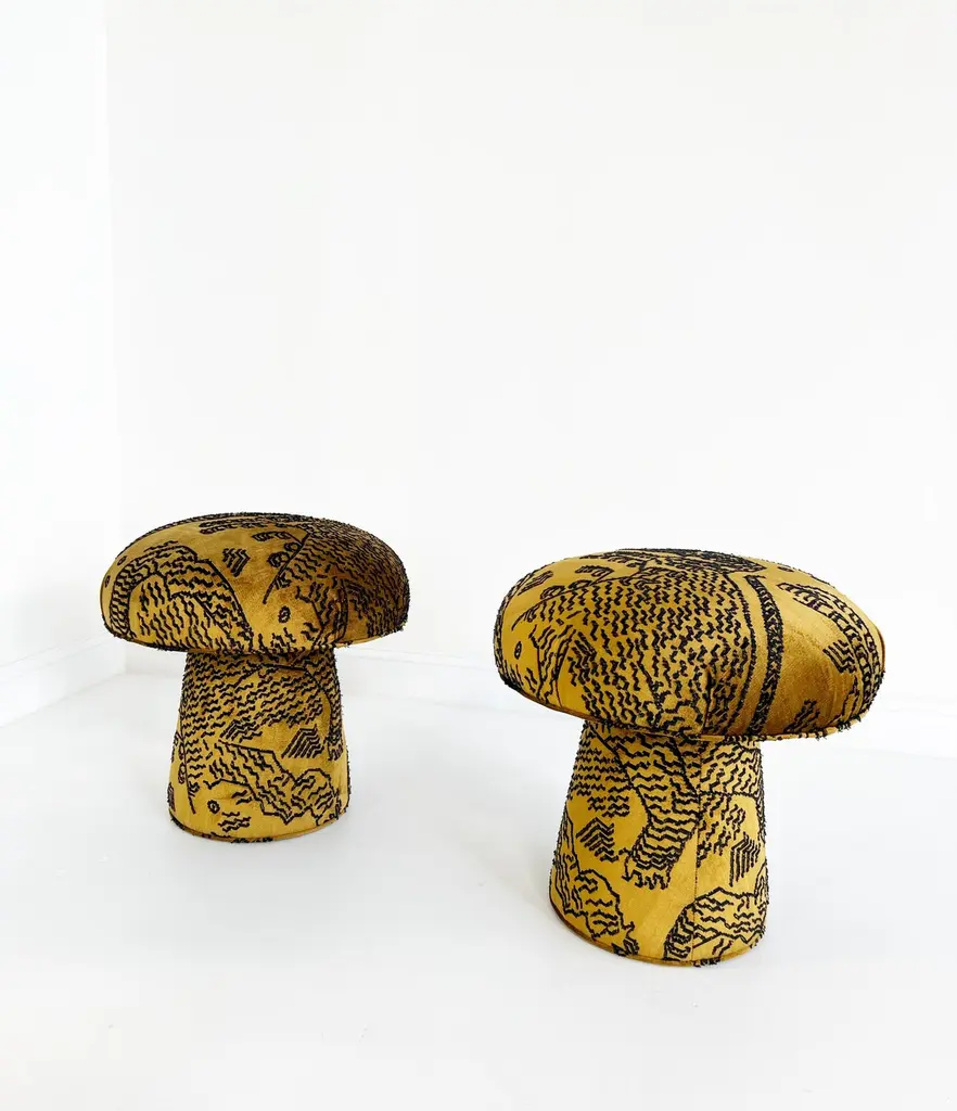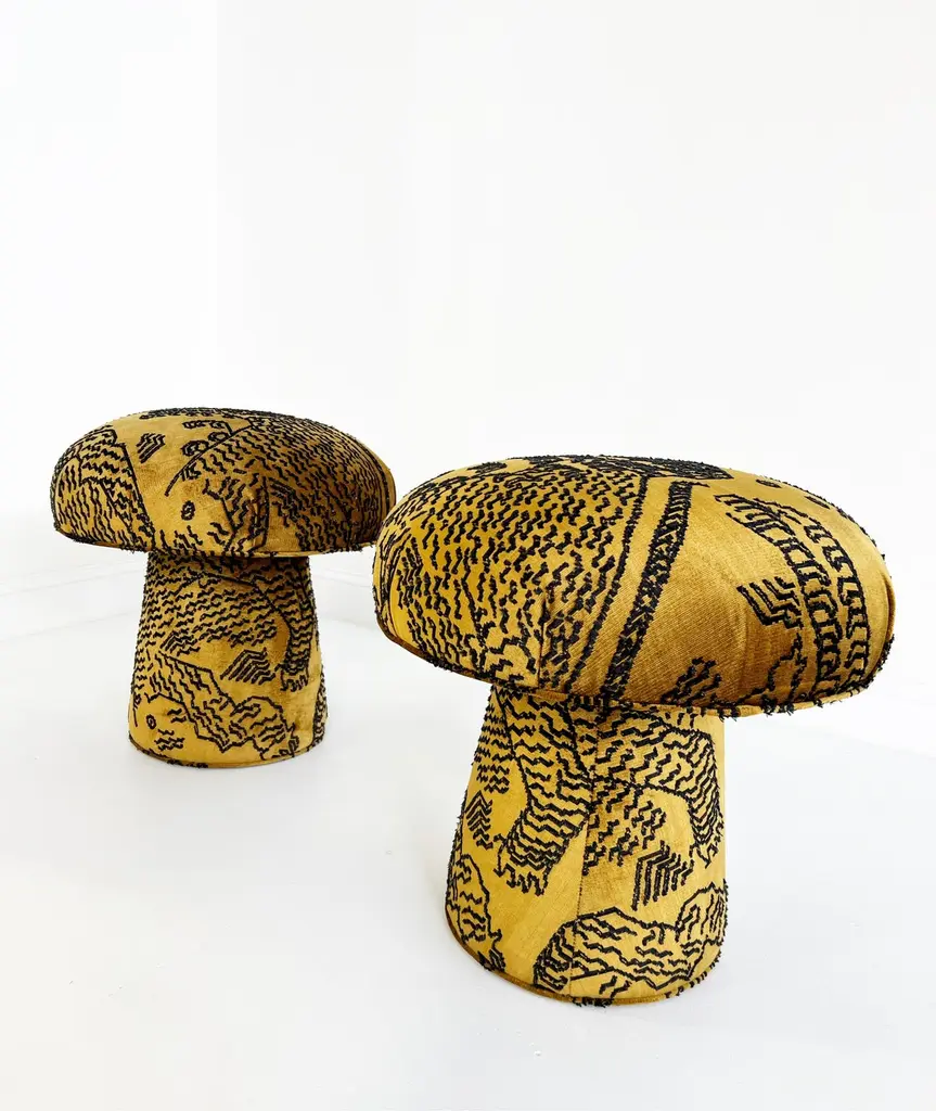This Forsyth Mushroom Pouf Ottoman was created and designed by the Forsyth design team. Each ottoman is handcrafted in Saint Louis. A cute decorative piece for any room adding natural texture and a bit of whimsy. The perfect ottoman or extra seat. Each mushroom pouf is completely handmade. Custom made to order. Please allow approximately 8 weeks. Interested in a different fabric? The mushroom pouf can be made bespoke to meet your design needs. If you are interested in a different fabric for your space, just ask.