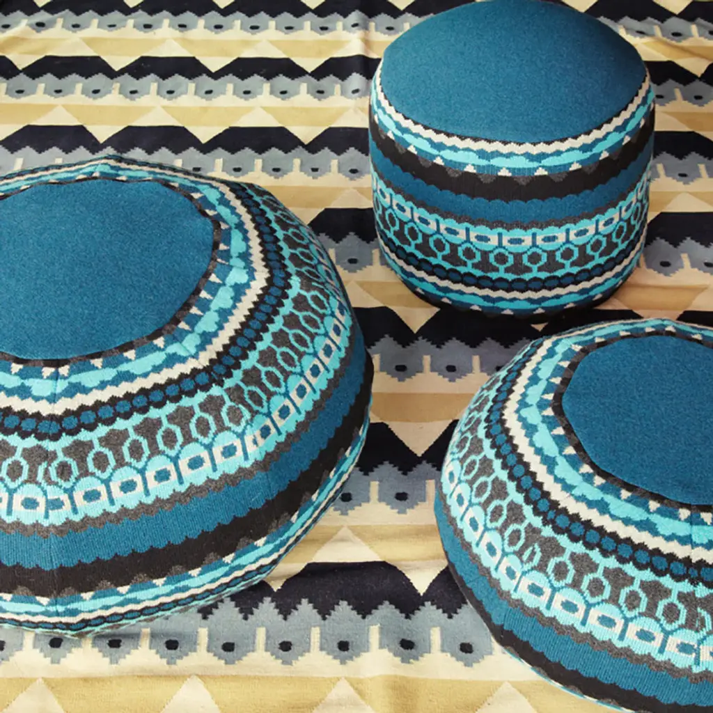 Frank fills out the trio as the largest of SCP's playful poufs upholstered in either knitted lamb’s wool or double-cloth woven panels reminiscent of orange segments. In a riot of patterns and colorful options, the wool for the cushion's covering is specially spun and dyed in England using traditional techniques and each one is plumped with recycled polyester fiber. Designer Donna Wilson's charming pieces are hand-crafted at SCP’s specialist factory in Norfolk, UK.