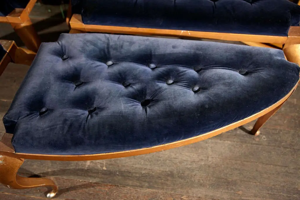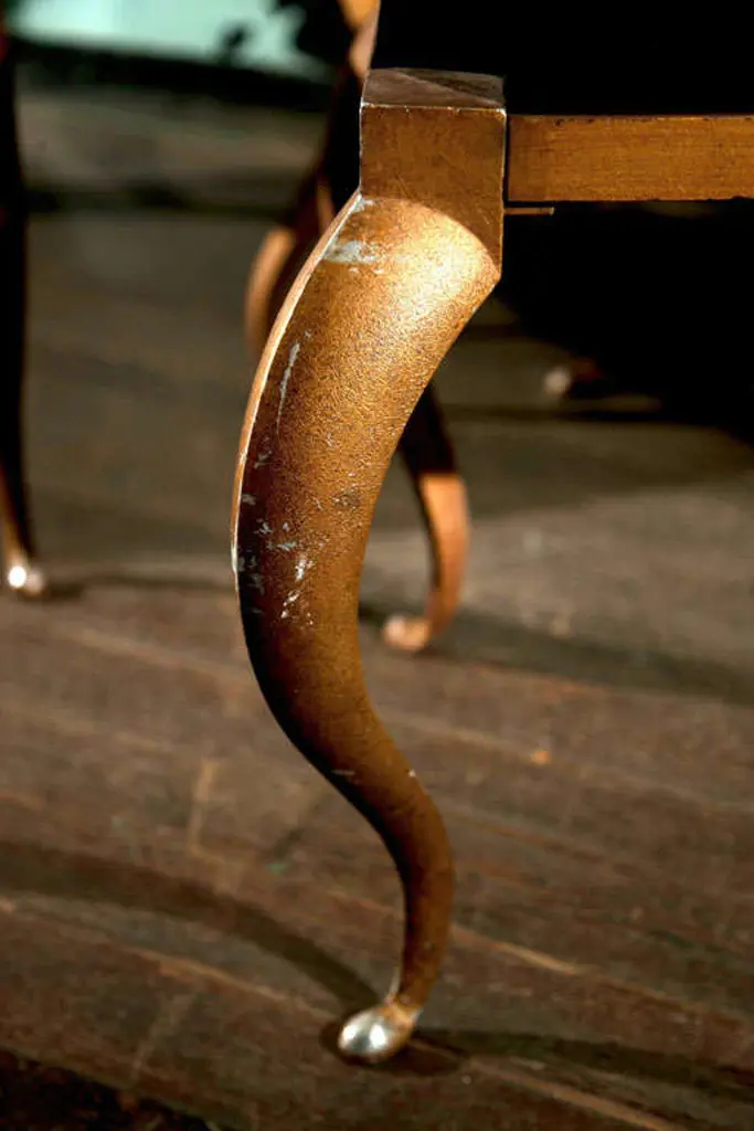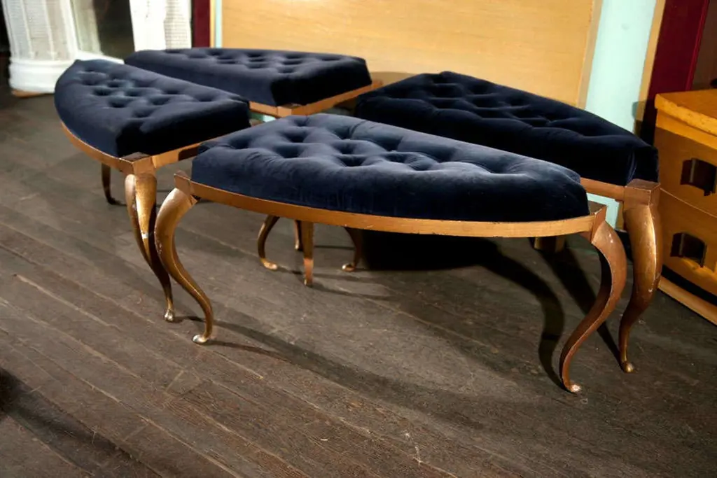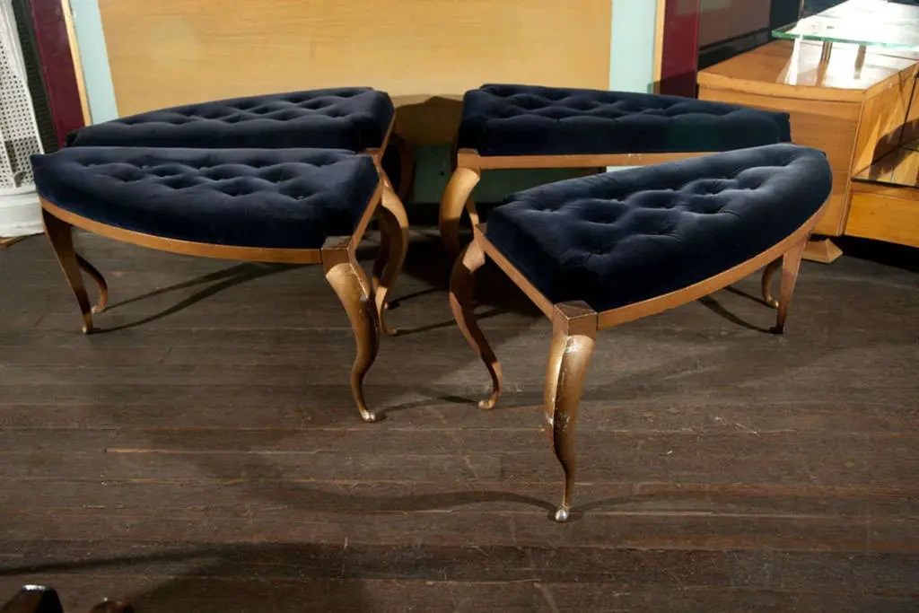 Metal framed poufs with Louis XV legs. Priced individually. 3 available.