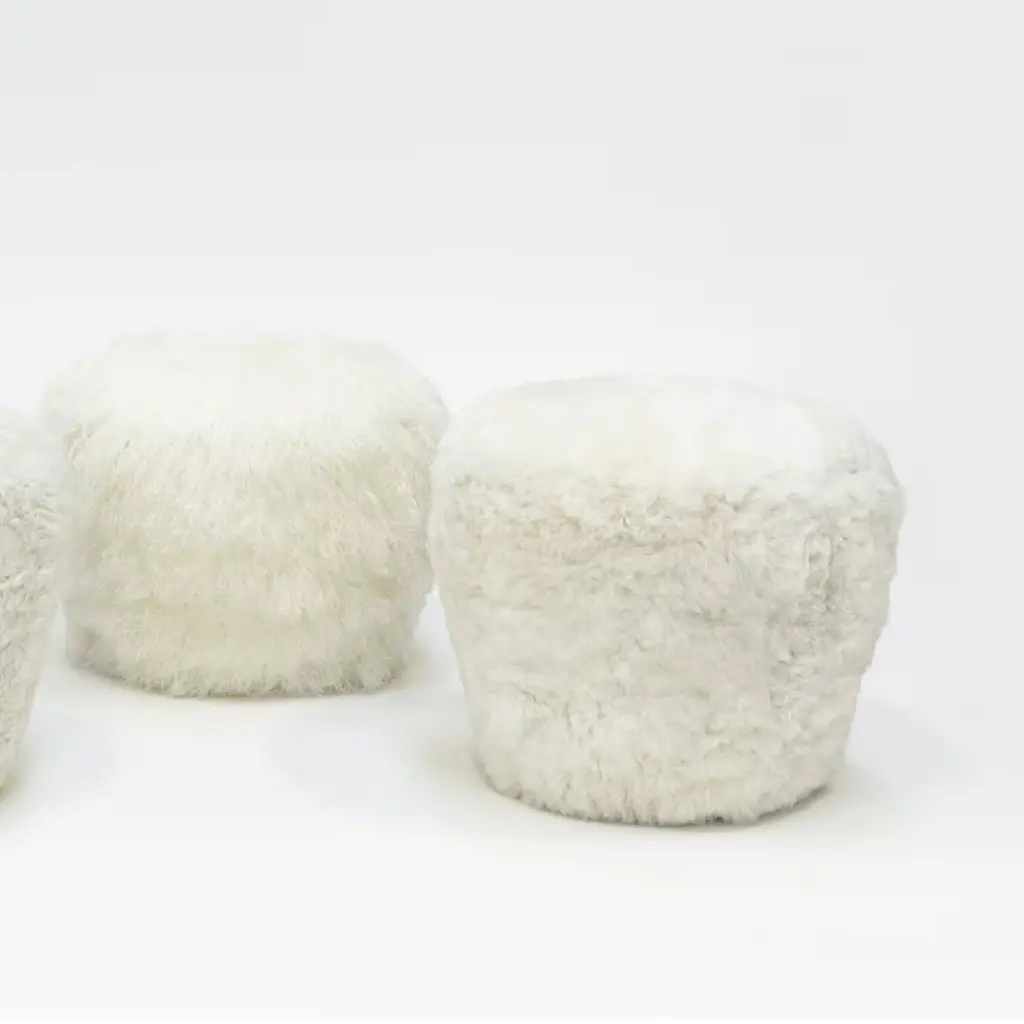 Furry pouf combines comfort and sustainability. It features a robust fibreglass frame with a swivel brass base. As with all pieces from Draga & Aurel's Heritage collection, the genuine furs used are second-hand.
