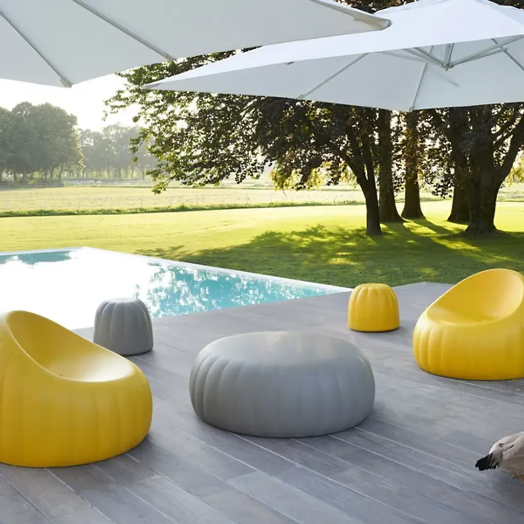 Whimsical and contemporary, the Gelee Pouffe is a luxury furnishing designed by Roberto Paoli for Slide. Made in Italy, this confectionary-inspired piece boasts a soft polyurethane build and an exquisitely shaped silhouette. Suitable for all-weather environments and ideal for modular spaces, you can place one or many of the Gelee Pouffe to serve as impromptu seating or as a side table, and it can display solo or alongside other members of the Gelee family.