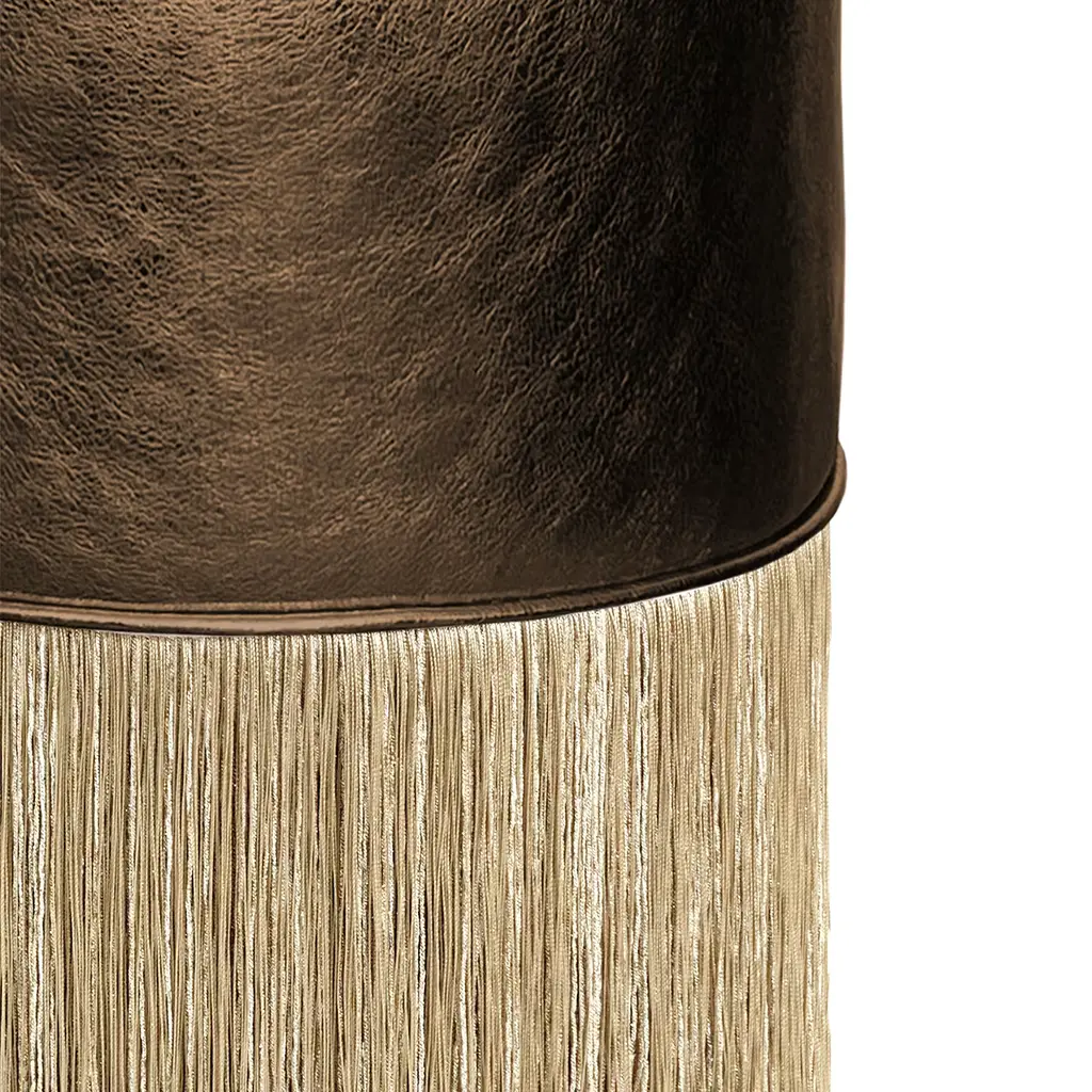 Gleaming Brown Leather Gold Fringes Pouf By Lorenza Bozzoli