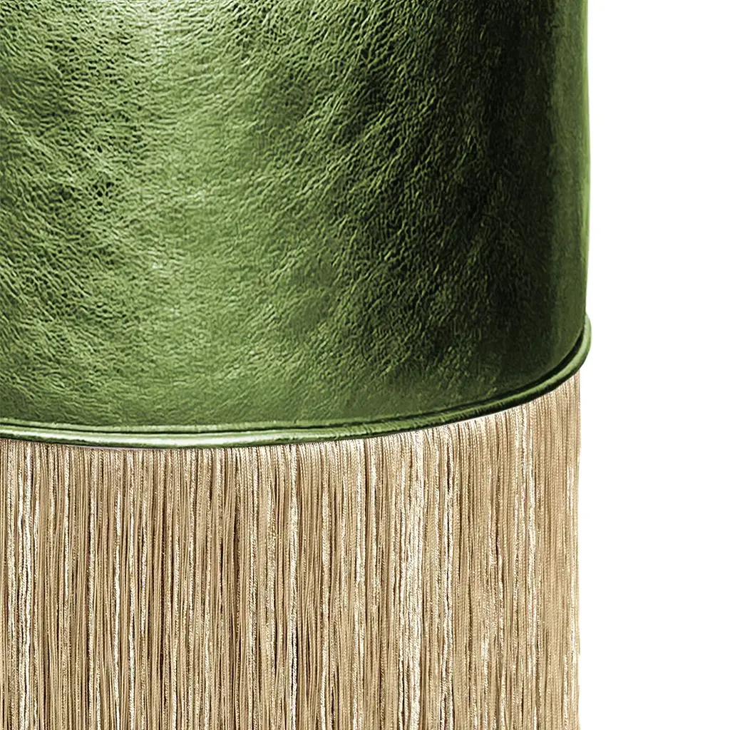 Gleaming Green Leather Gold Fringes Pouf By Lorenza Bozzoli