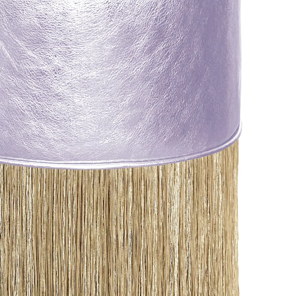 Gleaming Lillac Leather Gold Fringes Pouf By Lorenza Bozzol