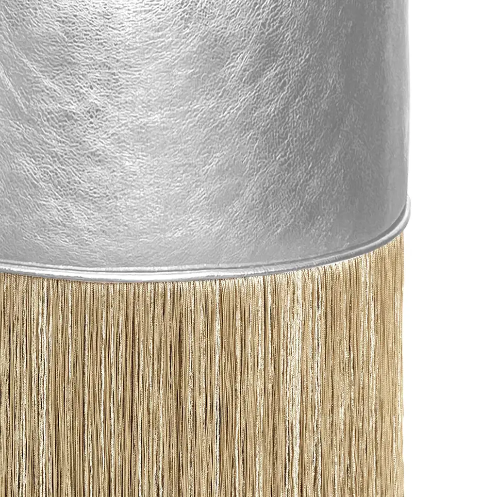 Gleaming Silver Leather Gold Fringes Pouf By Lorenza Bozzoli