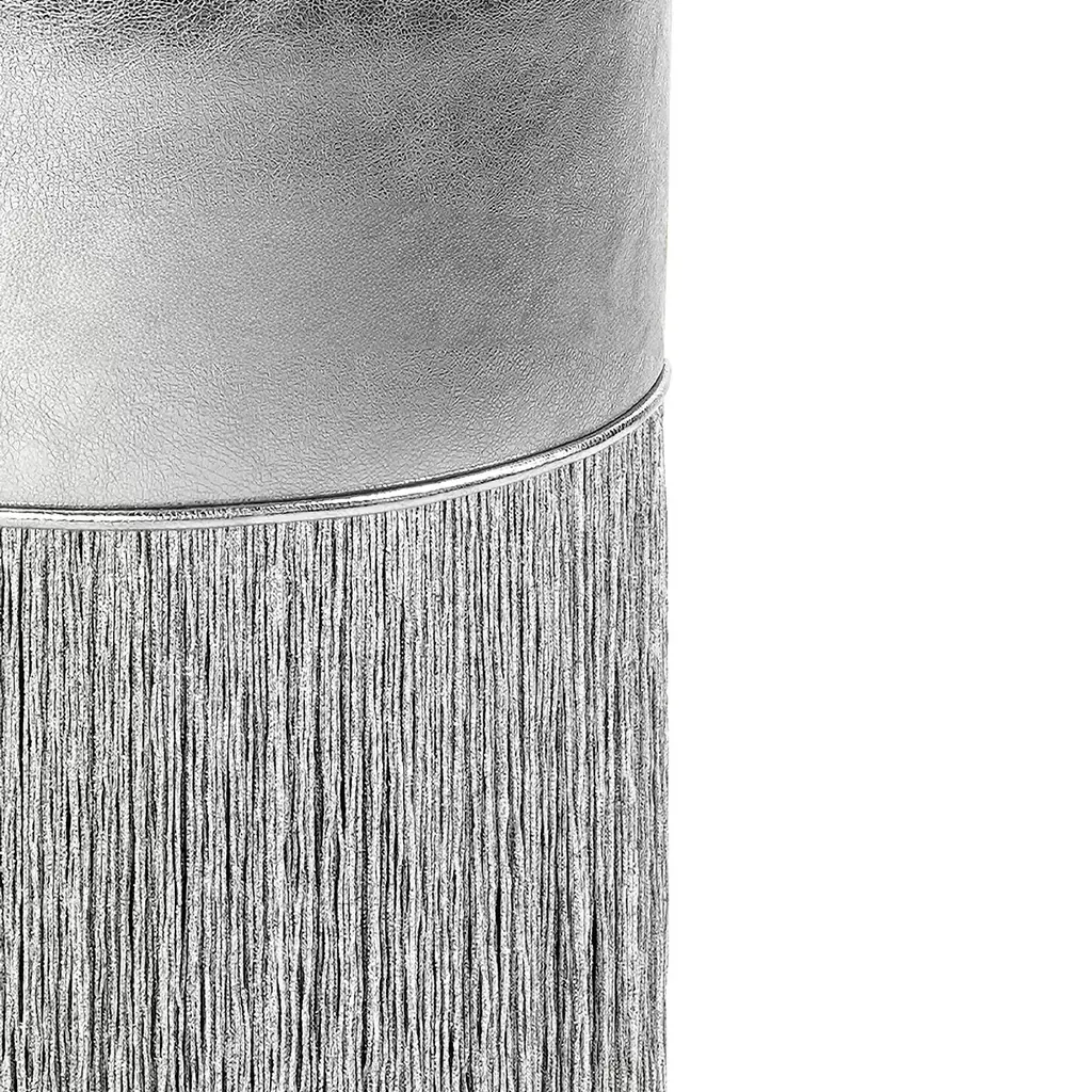 Gleaming Silver Metallic Leather Pouf By Lorenza Bozzoli