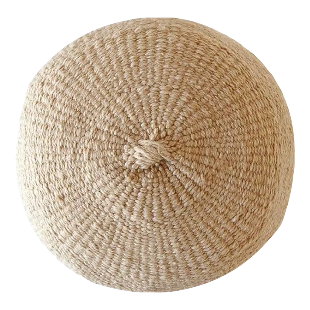 Guajiquiro Beige Knitted Jute Pouf - 14"h X 20"w X 20"d Round