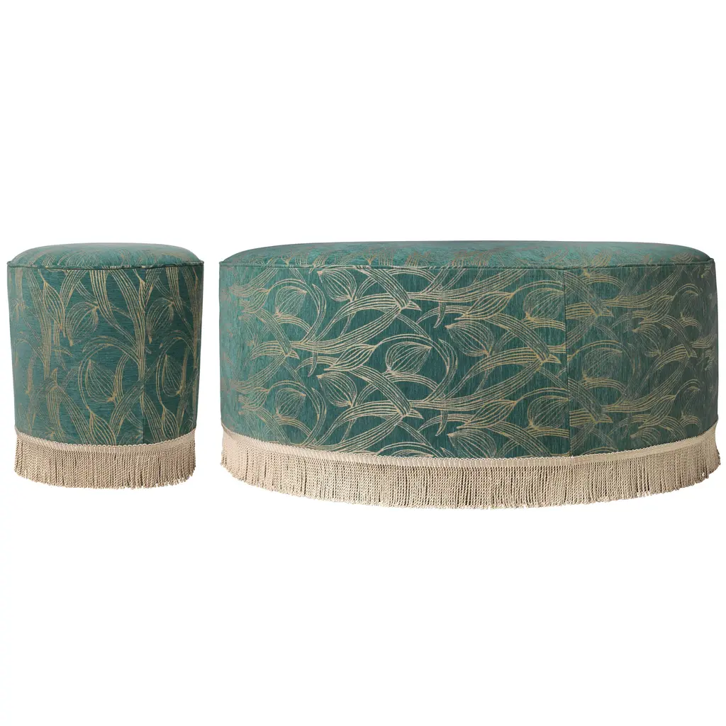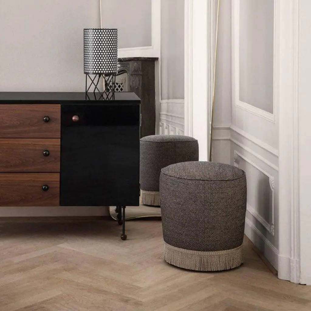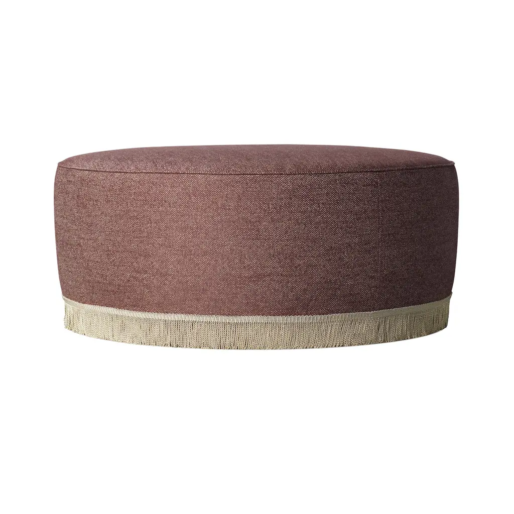 With references to the early 20th century, this modern pouf is encircled with a row of lush fringe at the bottom. Completely upholstered, the seating has a unobtrusive rounded silhouette that blends with a variety of interiors. Available in 2 sizes, Pouffe combines usefulness and comfort, serving as a pull-up extra seat for unexpected guests or as informal lounge seating.