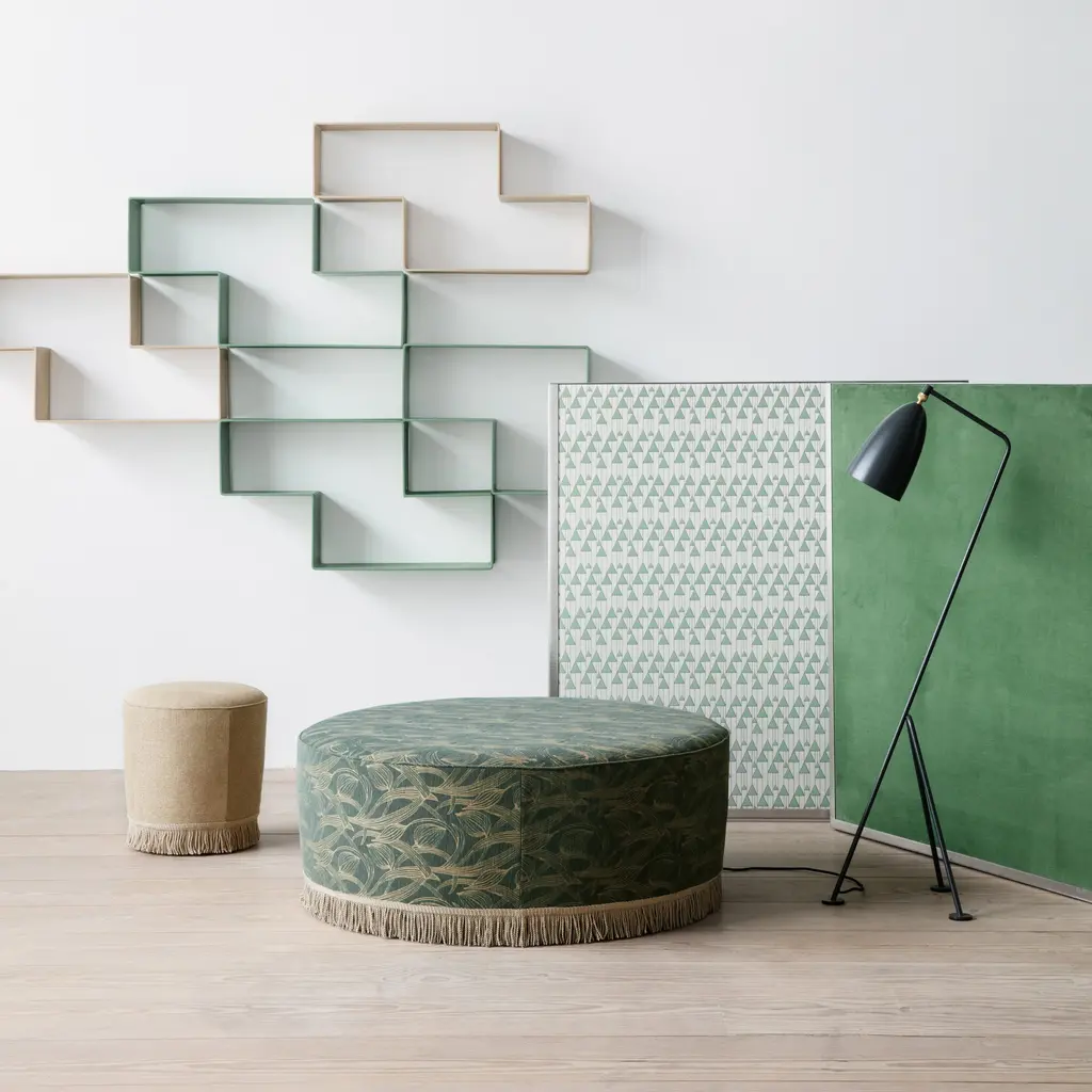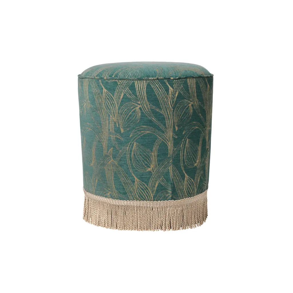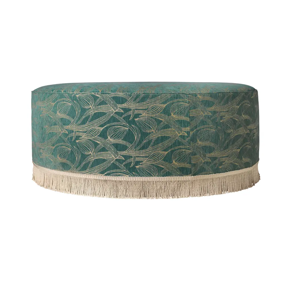 With references to the early 20th century, this modern pouf is encircled with a row of lush fringe at the bottom. Completely upholstered, the seating has a unobtrusive rounded silhouette that blends with a variety of interiors. Available in 2 sizes, Pouffe combines usefulness and comfort, serving as a pull-up extra seat for unexpected guests or as informal lounge seating.