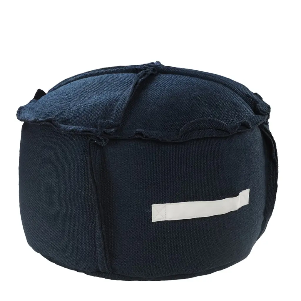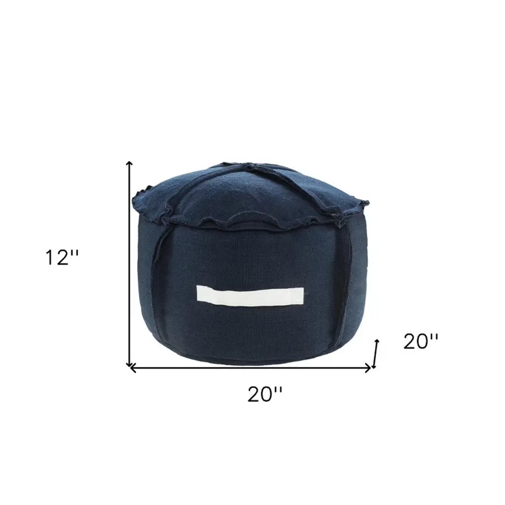 Homeroots 20" Blue Polyester Round Patchwork Indoor Outdoor Pouf Ottoman
