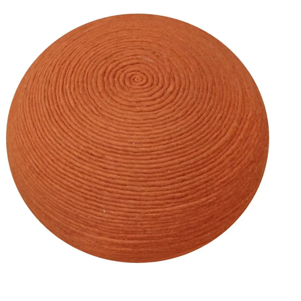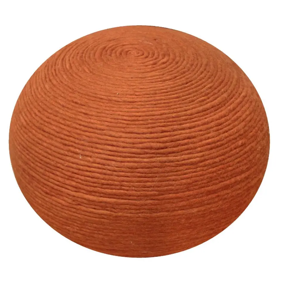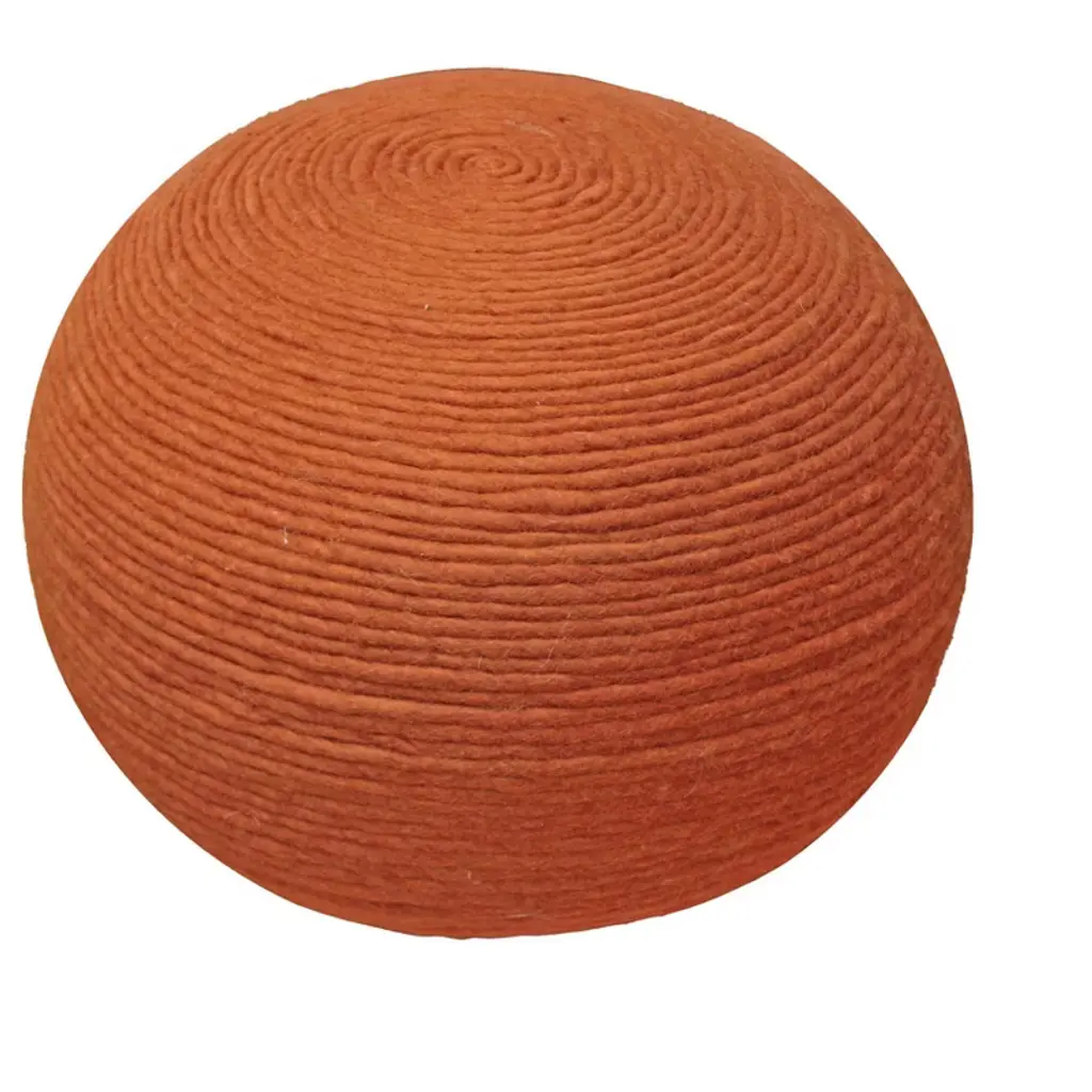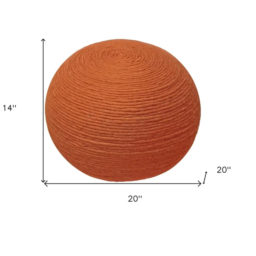 Homeroots 20" Orange Wool Round Ribbed Pouf Ottoman