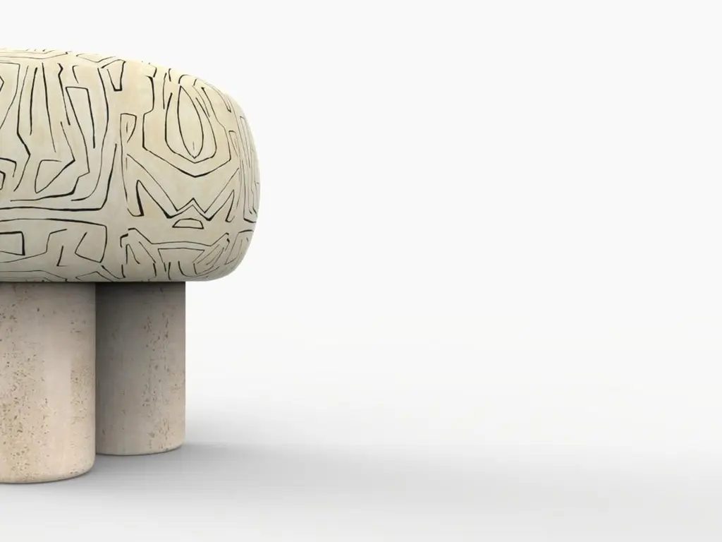 Hygge Puff Designed By Saccal Design House Graffito Linen Onyx Travertine