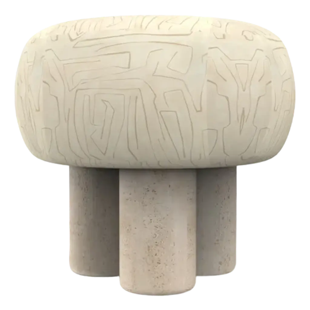 Hygge Puff Designed By Saccal Design House In Linen Kuba Fabric & Travertine