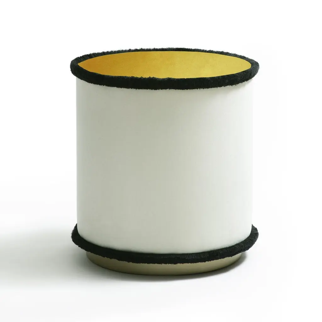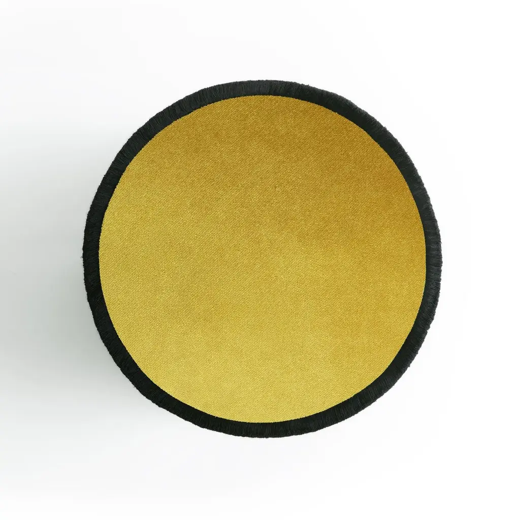 IL Pouf Graphic is the collection with a minimal and graphic style, geometric and functional shape, made with top quality materials. IL Pouf Graphic features three white velvet poufs with a hint of color on the seats in the brick, mustard and green lines. The black fringes that outline the round perimeters underline the geometric and modern style, which can also be inserted into a classic living room. This collection combines functionality and high aesthetic and qualitative value, where the classic style is revisited in a modern key. LO Decor IL Pouf is a splendid showcase of meticulous craftsmanship and innovative design. For the most demanding and sophisticated clients , this last outstanding LO Décor creation reflects the Italian refined design that combines functional products, high quality and design value. IL Pouf is the perfect synthesis of art and craftsmanship, where the skills of talented Italian artisans are employed to create poufs that enhance the value of impeccable details. The commitment to excellence involves and characterized LO Décor IL Pouf.Cylindrical in shape and realized in solid wood frame, LO Décor IL Pouf echoes the refined mood design of its designer Lorenza Briola, noted for her highly sophisticated aesthetic and meticulous production process. Upholstered with high quality fabrics and impeccable soft fringes that run around the perimeter of the seat and at the bottom, IL Pouf is softly padded and raised on a satin brass - finished plinth that coats the wooden base adding a precious, bright accent to the whole design. The iconic LO Décor fringes are proposed in different hues, underlining the fusion of geometric and timeless design, creating a balance between contemporary and classical aesthetics.Elegant and minimal, striking in its simplicity, this refined pouf is a perfect accent piece for any refined living.