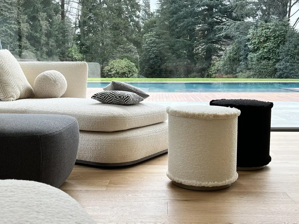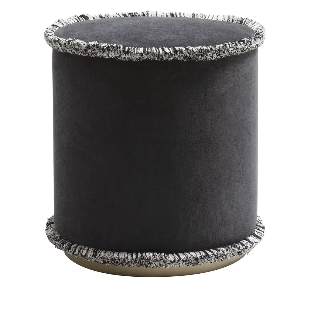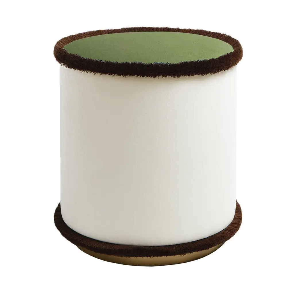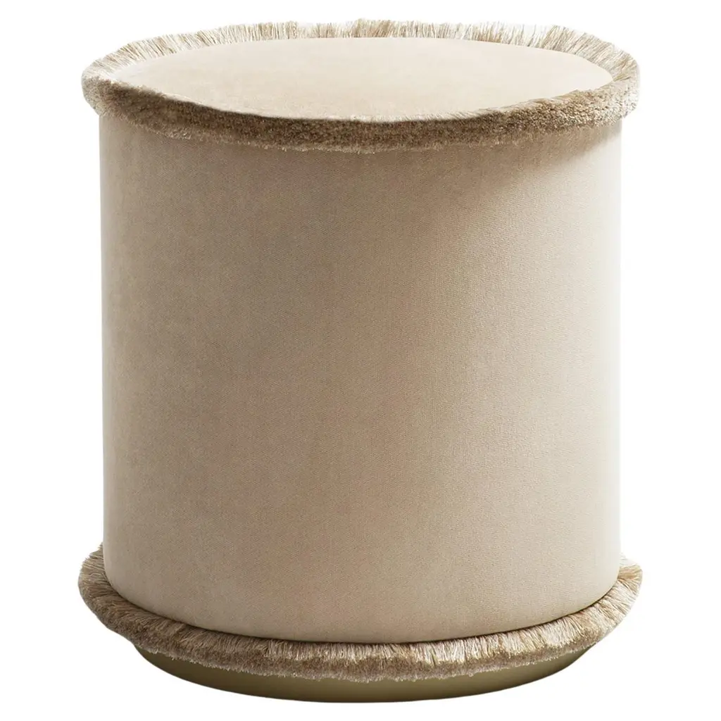 IL Pouf Tone on Tone is the pouf collection in the hues of green, brick, mustard and beige. These refined poufs embellish any environment with their simple and compact design. Imbibing any space with a natural appeal, IL Pouf is upholstered in soft velvet wrapped in thick fringes to create a cozy look. Utmost comfort and simplicity merge in this compact pouf, refined modern design precious as an occasional seat in a living room or bedroom alike. LO Decor IL Pouf is a splendid showcase of meticulous craftsmanship and innovative design. For the most demanding and sophisticated clients , this last outstanding LO Décor creation reflects the Italian refined design that combines functional products, high quality and design value. IL Pouf is the perfect synthesis of art and craftsmanship, where the skills of talented Italian artisans are employed to create poufs that enhance the value of impeccable details. The commitment to excellence involves and characterized LO Décor IL Pouf.Cylindrical in shape and realized in solid wood frame, LO Décor IL Pouf echoes the refined mood design of its designer Lorenza Briola, noted for her highly sophisticated aesthetic and meticulous production process. Upholstered with high quality fabrics and impeccable soft fringes that run around the perimeter of the seat and at the bottom, IL Pouf is softly padded and raised on a satin brass - finished plinth that coats the wooden base adding a precious, bright accent to the whole design. The iconic LO Décor fringes are proposed in different hues, underlining the fusion of geometric and timeless design, creating a balance between contemporary and classical aesthetics.Elegant and minimal, striking in its simplicity, this refined pouf is a perfect accent piece for any refined living.