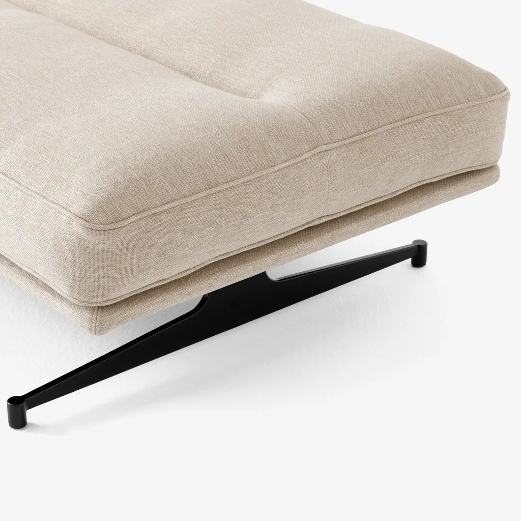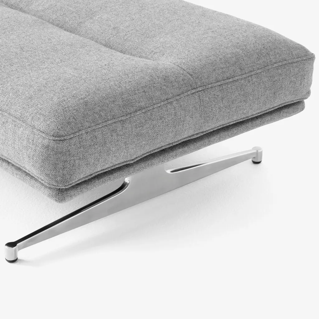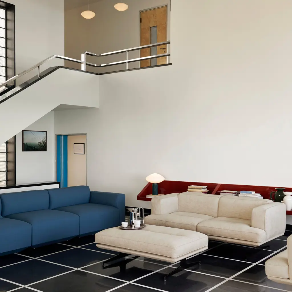 Torbjørn Anderssen and Espen Vol add a dramatically sized pouf to augment Inland collection’s mix of Scandi and Italian-inspired design influences. Also doubling as a spare seat, the generous rectangle almost floats on its sculptural steel supports, beckoning with its plush cushioning, custom-upholstered in a fine textile or buttery leather.