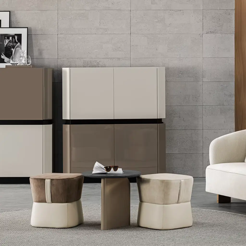 Iseo Beige Textile And Leather Pouf Designed By Marco Piva