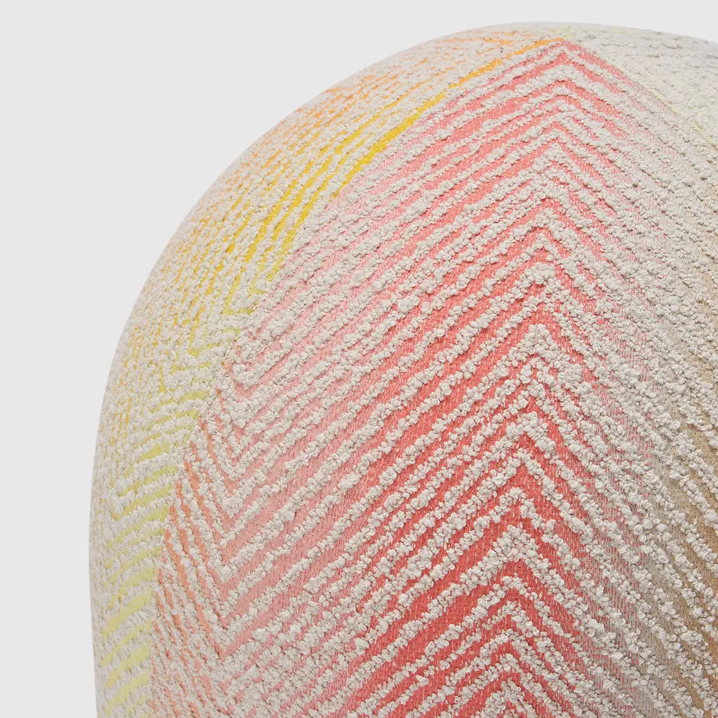 Romantic and glamorous in its interplay of feminine tones and sartorial detailing, this acrylic pouf belongs to a series of colorful pieces playfully inspired by the "panettone", a Milanese sweet culinary tradition. A captivating boucle chevron pattern extensively emerges from a backdrop where pastel tones of pink and yellow combine in a sublime shaded effect. More color options are available in the Artemest catalog.