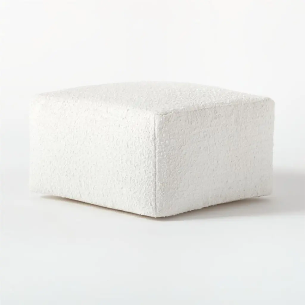 Oversized boucle pouf is woven of recycled yarn with a technique that takes up to five hours to complete. Each piece will be unique and feel artisanal in nature, with a texture that mirrors our favorite boucles. CB2 exclusive.