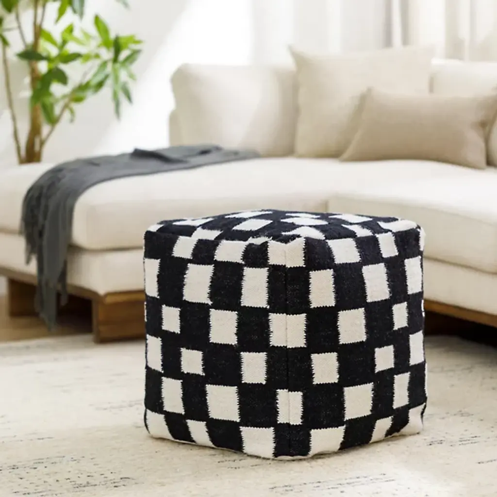 The Jacinta Pouf from Surya employs artisanal modern weaving to create subtle geometric patterns. Crafted in India with a wool-cotton blend, its removable cover ensures easy maintenance. The knife-edge finish emphasizes its clean lines, while polybead filling offers reliable support. Perfect as additional seating in a living room or as a companion piece to a reading chair. The natural materials of the Jacinta Pouf develop character over time while maintaining their initial appeal.
