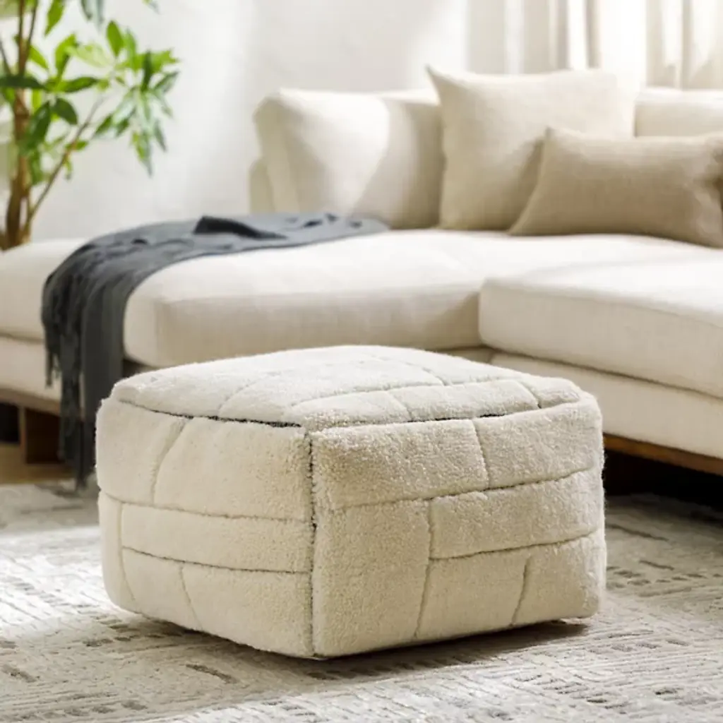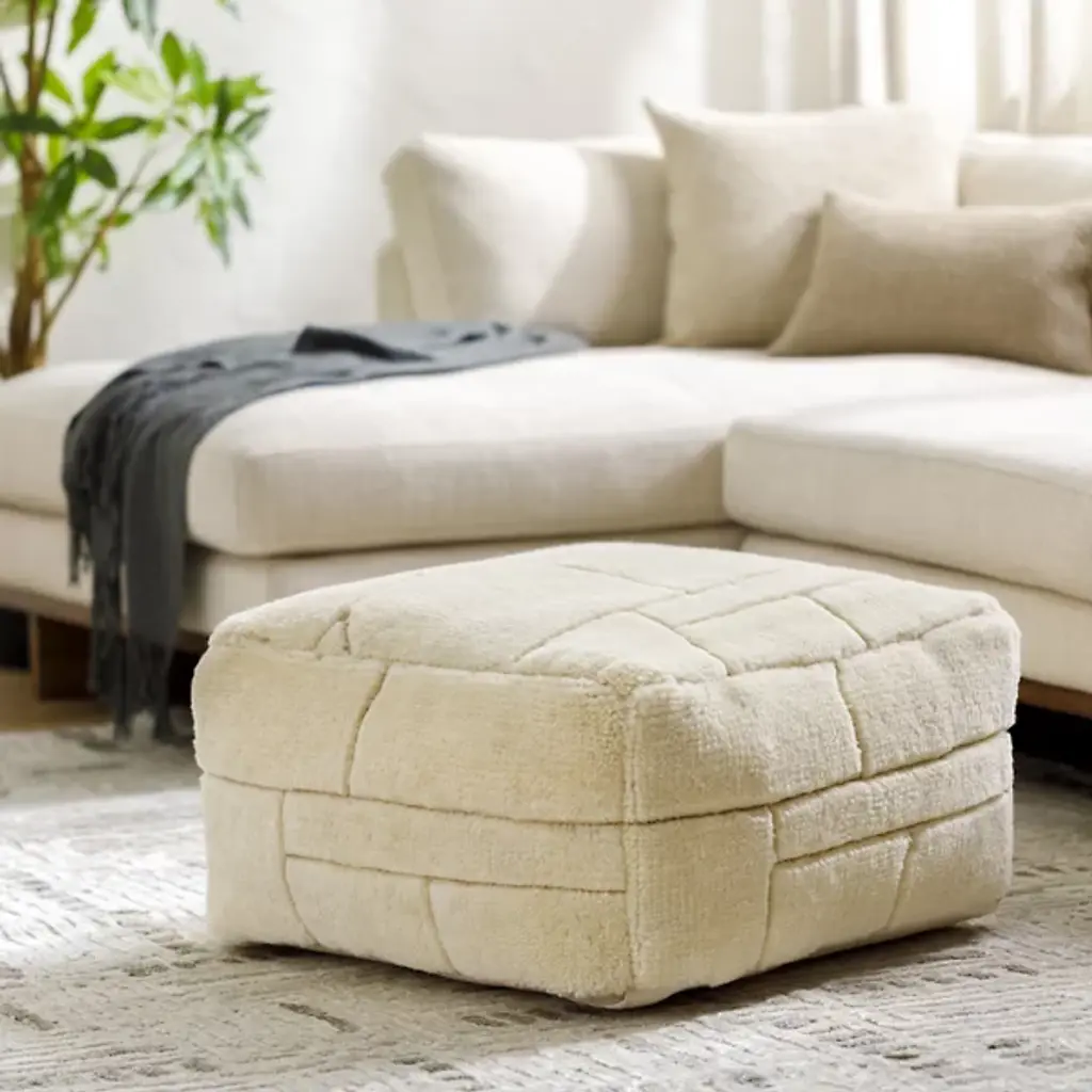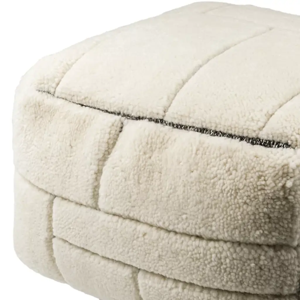 The Jakob Pouf from Surya showcases luxurious shag texture through expert hand-knotting techniques. Made in India, its wool-cotton blend and removable cover offer both luxury and practicality. The polybead filling adapts perfectly beneath the knife-edge finish, creating an exceptionally comfortable seat. Place it near a reading nook, beside a sofa, or use it as a footrest in a bedroom retreat. The durable materials and thoughtful construction ensure this pouf retains its allure through daily use.