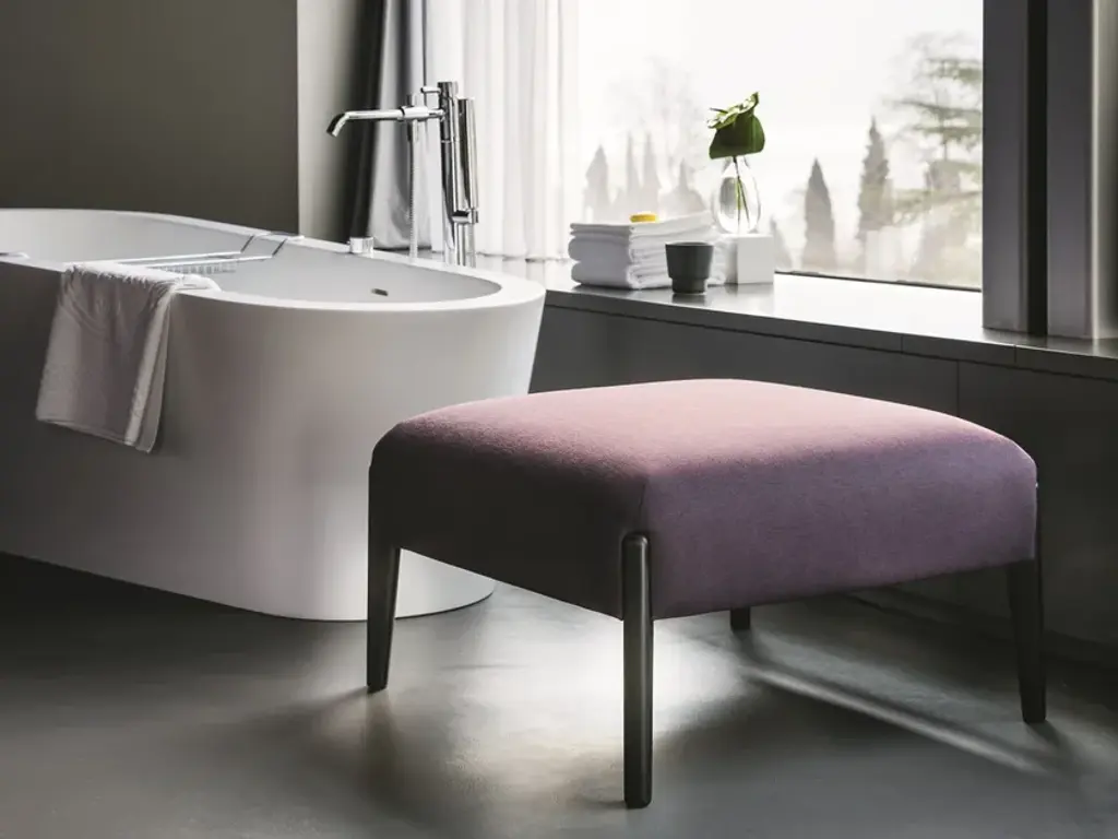 Join by La Cividina is an upholstered pouf with dimensions: H: 16 1 ⁄ 2” L: 27 1 ⁄ 2” D: 27 1 ⁄ 2”.A complete and versatile family of upholstery, from sofas to armchairs, and benches to poufs, featuring distinctive, elegantly soft shapes, with slender armrests into which the wooden feet are set like jewels, in a natural ash, wengé or graphite finish, or in die-cast aluminium.The wooden frame is padded with non-deformable variable-density polyurethane foam, and finished in polyester fibre. There is a selection of different coverings in fabric or high-quality leather.